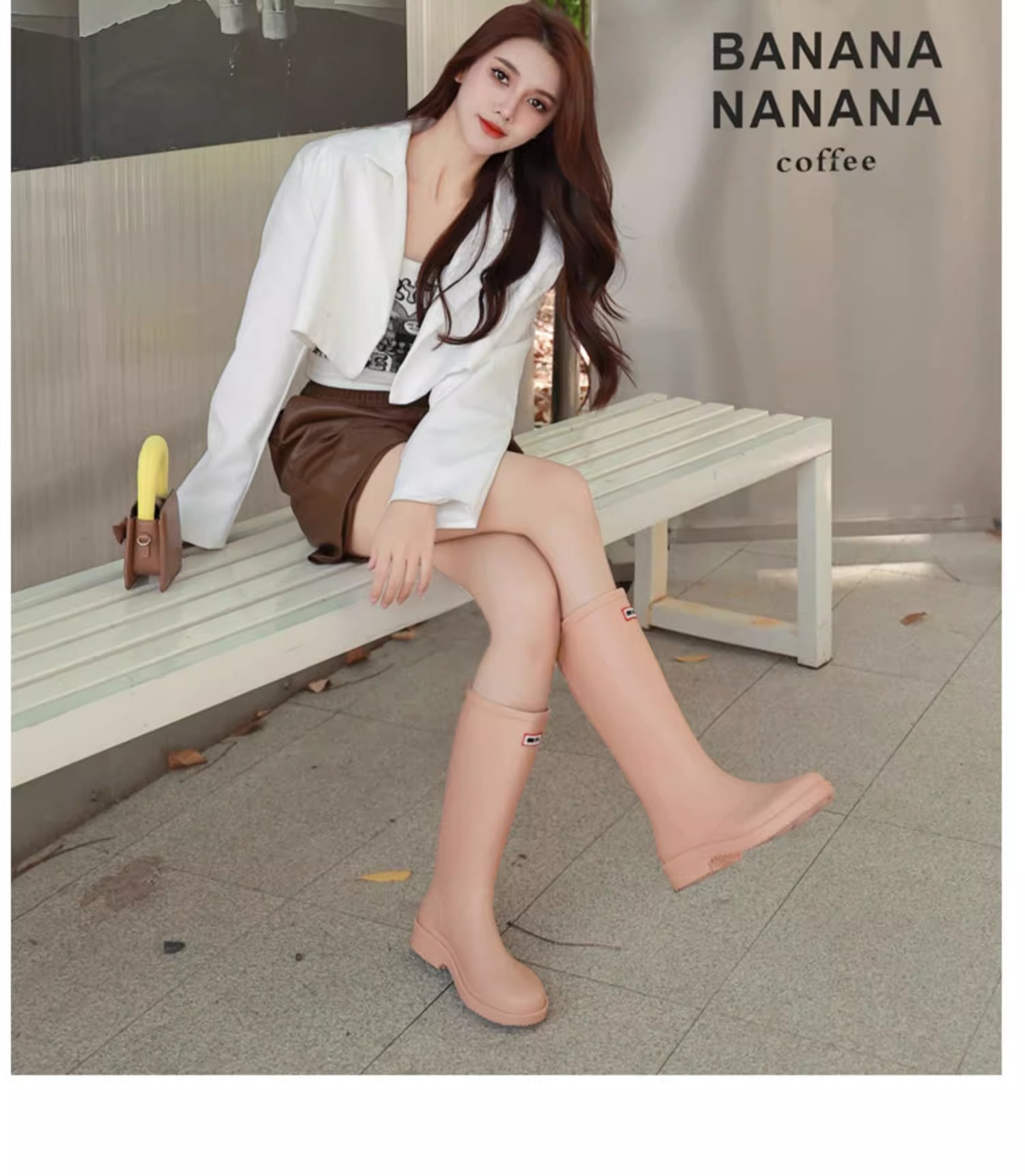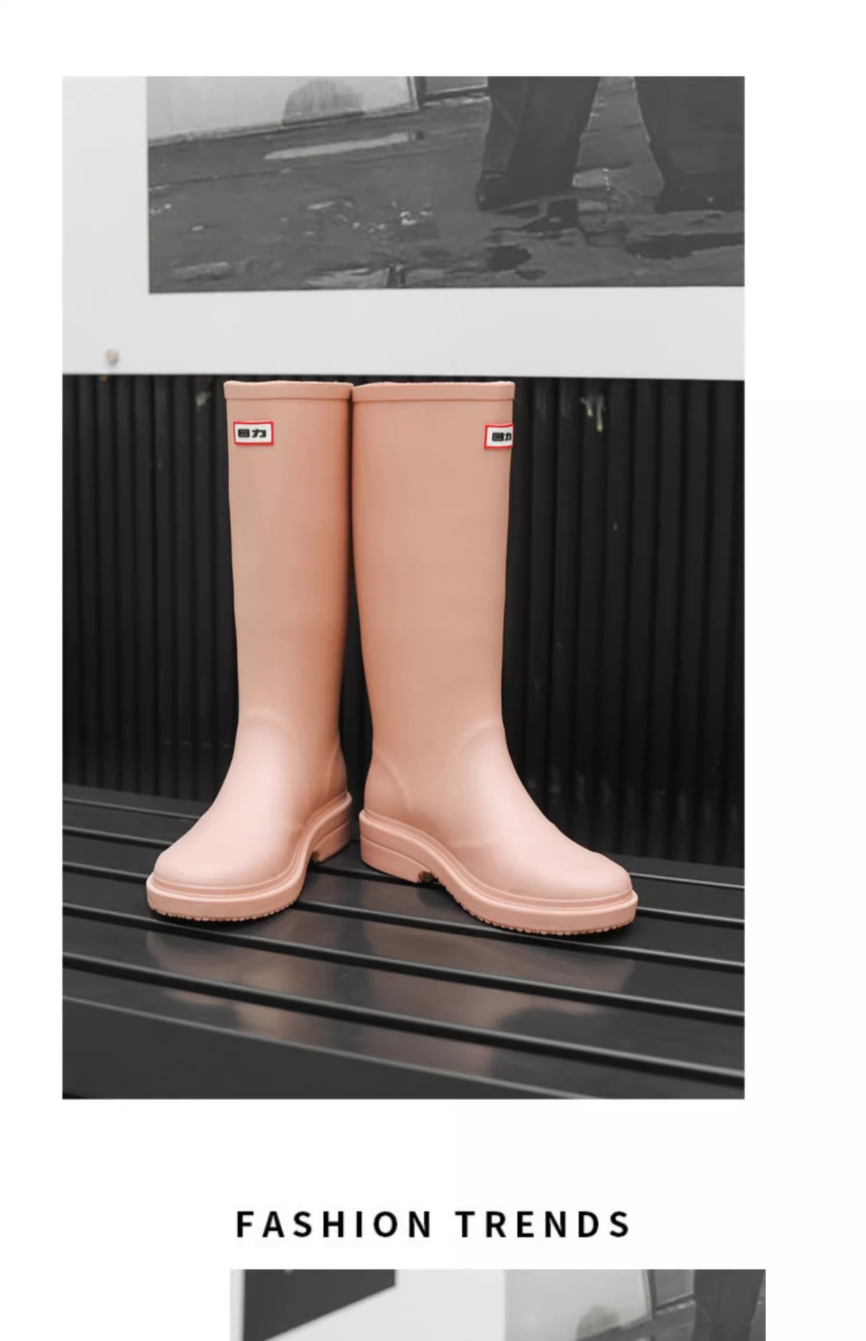 Huili 033 레인 슈즈 여성용 워터 슈즈 유행 아웃웨어 장화 여성용 방수 미끄럼 방지 높은 주방 워터 부츠