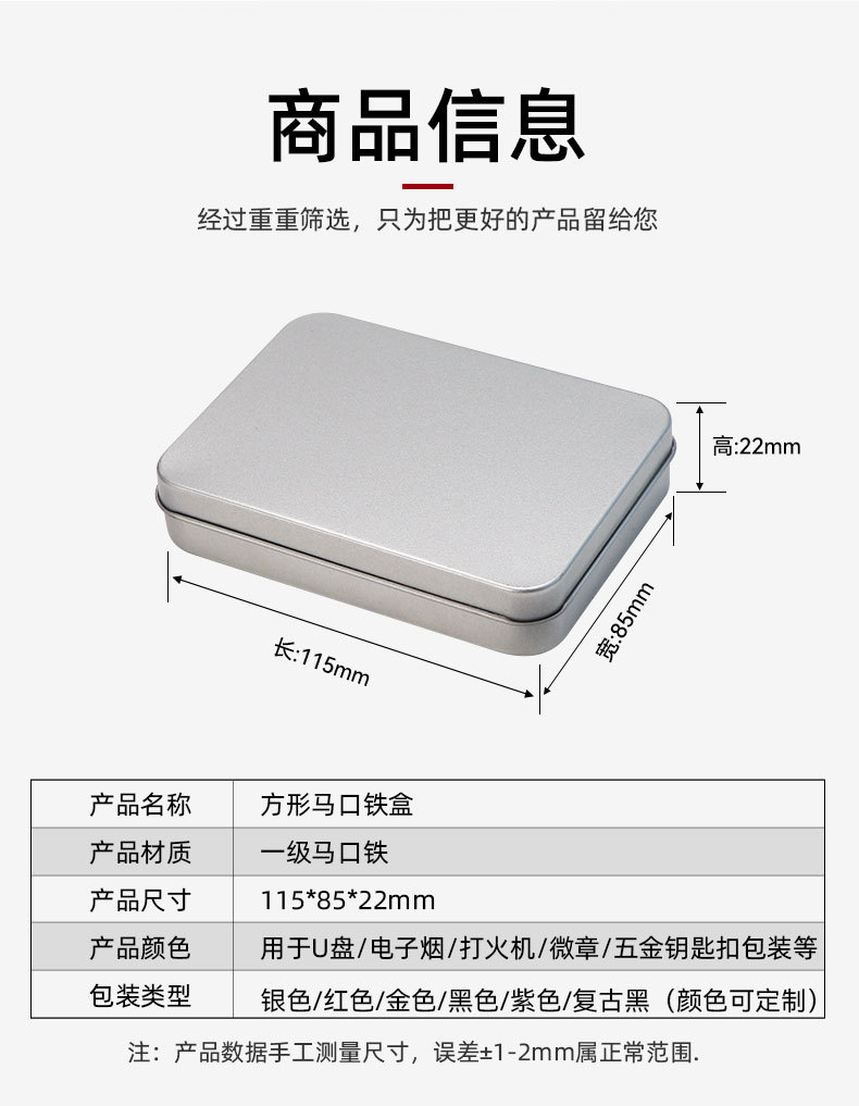 • 은색 평면 뚜껑 빈 상자, 115*85*22mm 상하 분리형 빈 상자