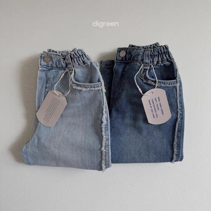한국식 인 루즈 청바지 가죽 밴드 탄성 캐주얼 모든 매치 웨스턴 스타일 소년 소녀 용 아동 바지 봄 가을 바지스토어 가기