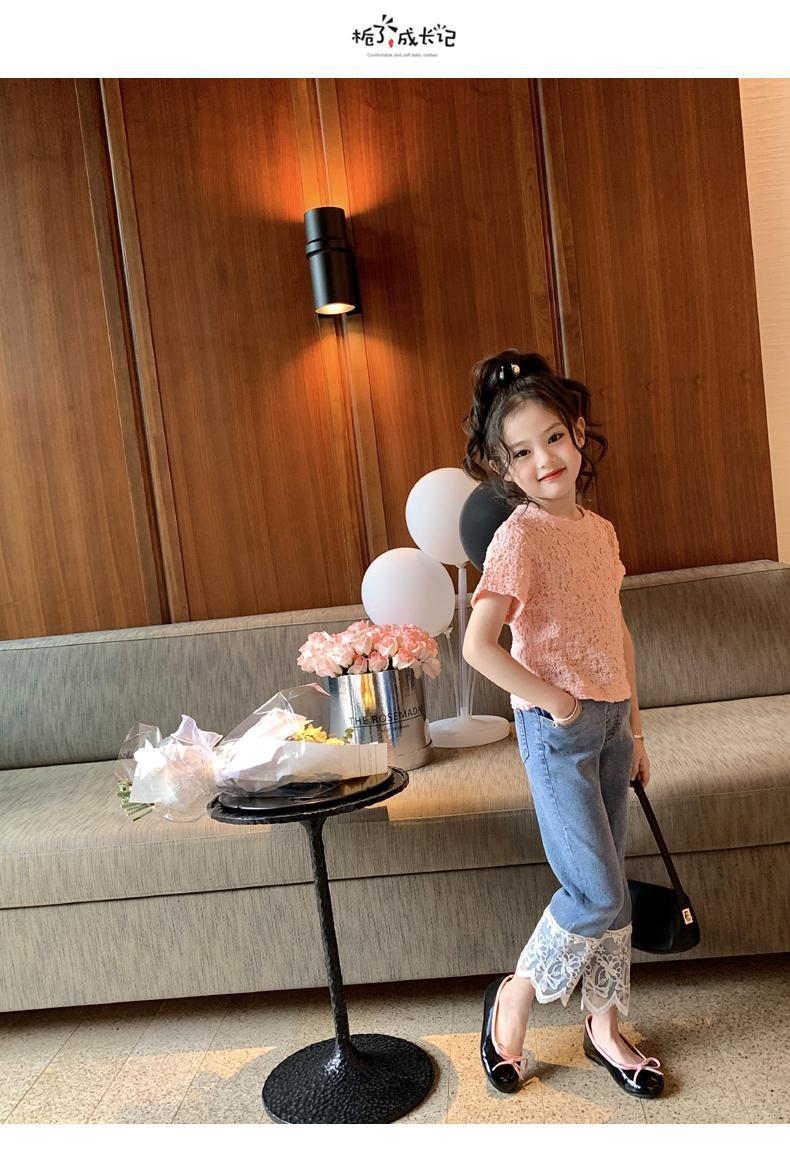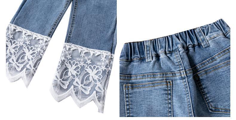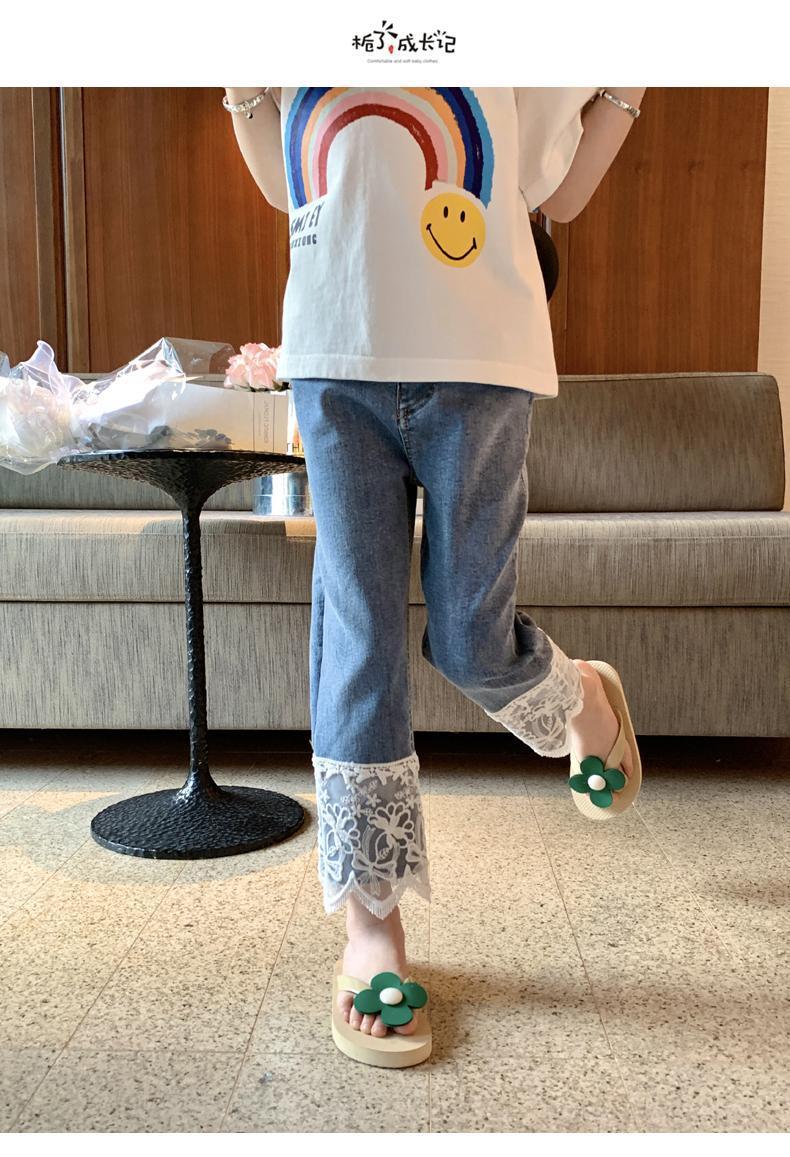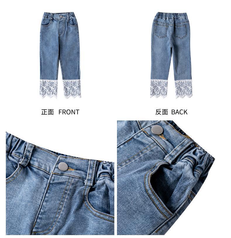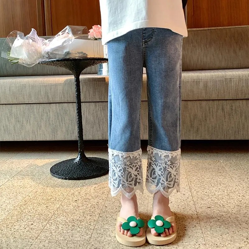 오리지널 걸스 엘라스틱 레이스 청바지 봄과 가을 2023 새로운 어린이 올매치 스트레이트 팬츠 스위트 발목 길이 팬츠