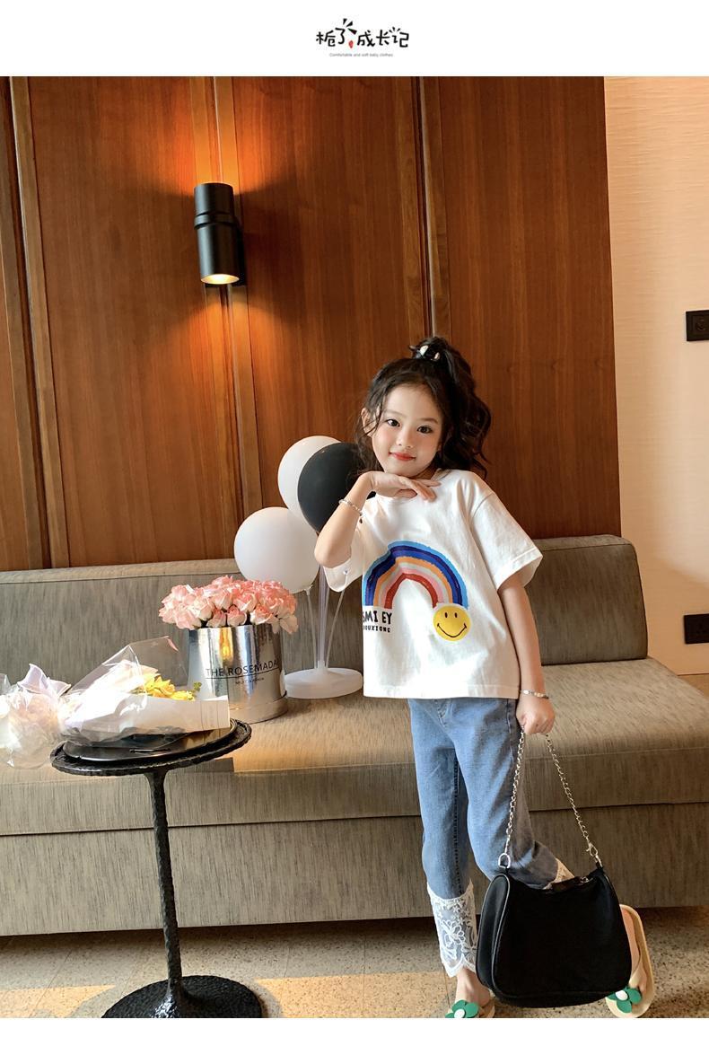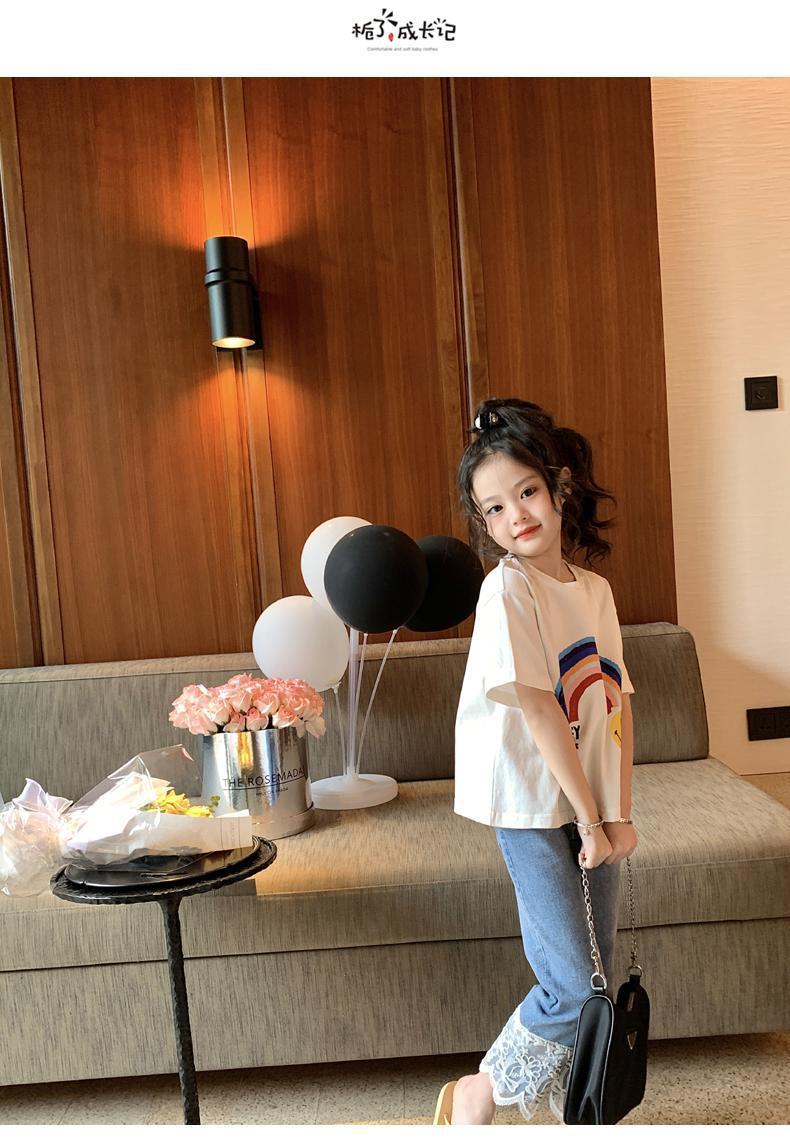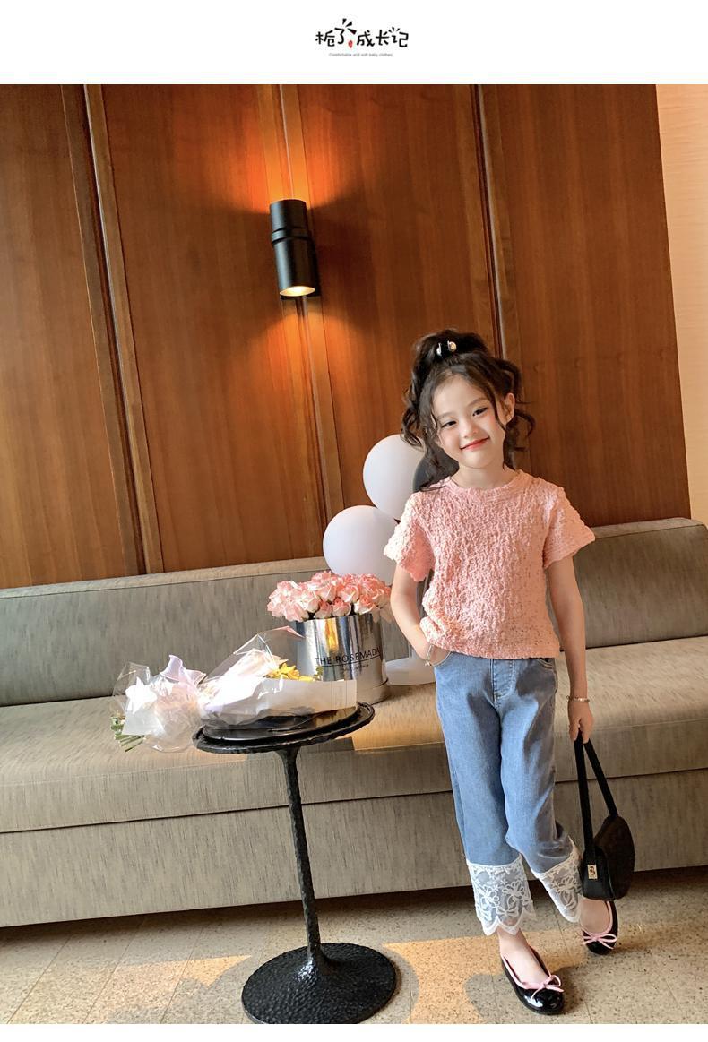 오리지널 걸스 엘라스틱 레이스 청바지 봄과 가을 2023 새로운 어린이 올매치 스트레이트 팬츠 스위트 발목 길이 팬츠