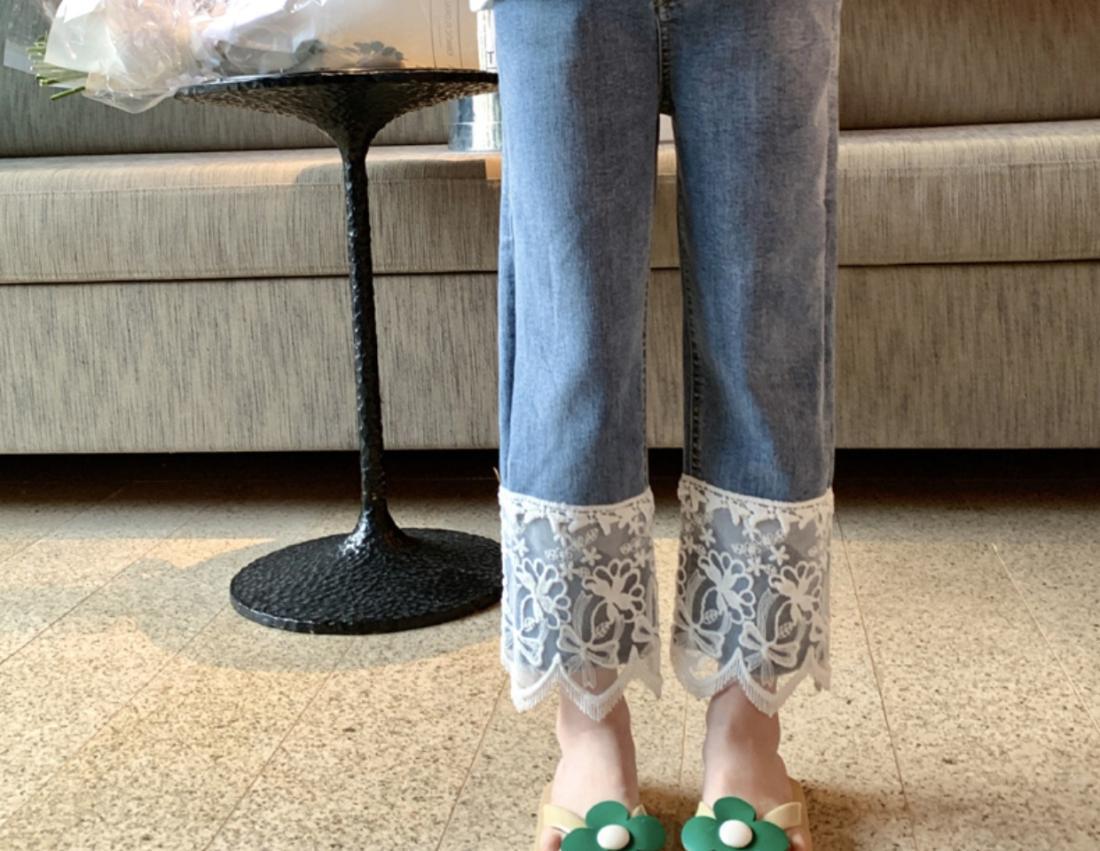 오리지널 걸스 엘라스틱 레이스 청바지 봄과 가을 2023 새로운 어린이 올매치 스트레이트 팬츠 스위트 발목 길이 팬츠스토어 가기