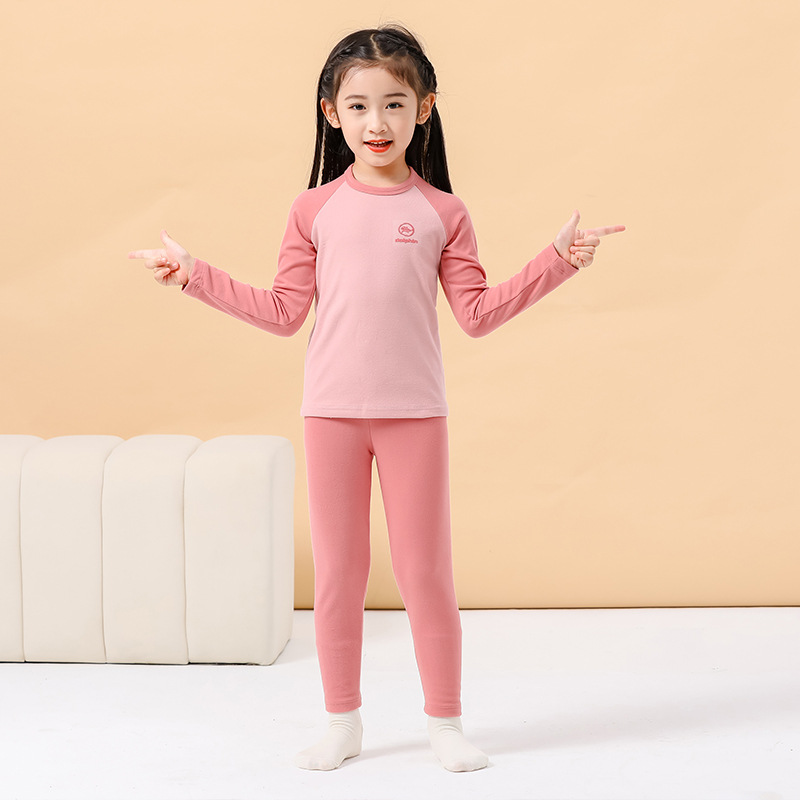 가을과 겨울 양면 샌딩 세트 소년 잠옷 대형 어린이 및 소녀 홈 속옷을위한 어린이 열 속옷