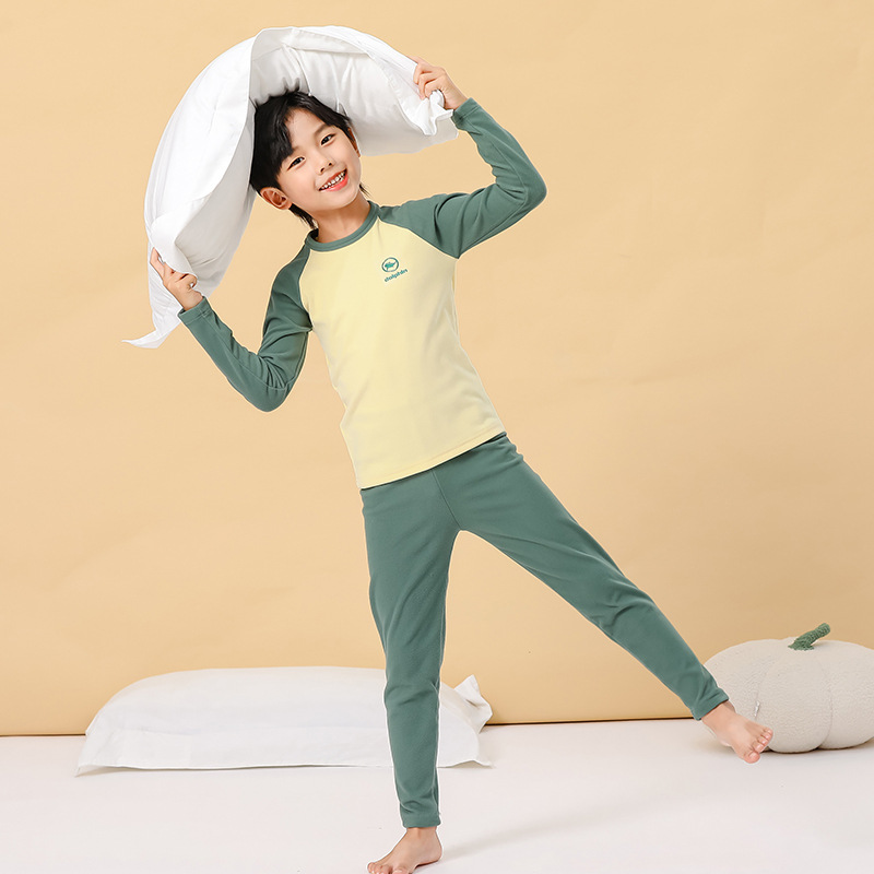가을과 겨울 양면 샌딩 세트 소년 잠옷 대형 어린이 및 소녀 홈 속옷을위한 어린이 열 속옷스토어 가기