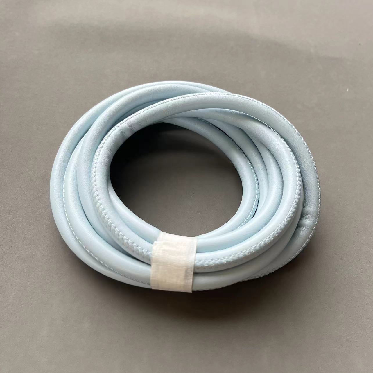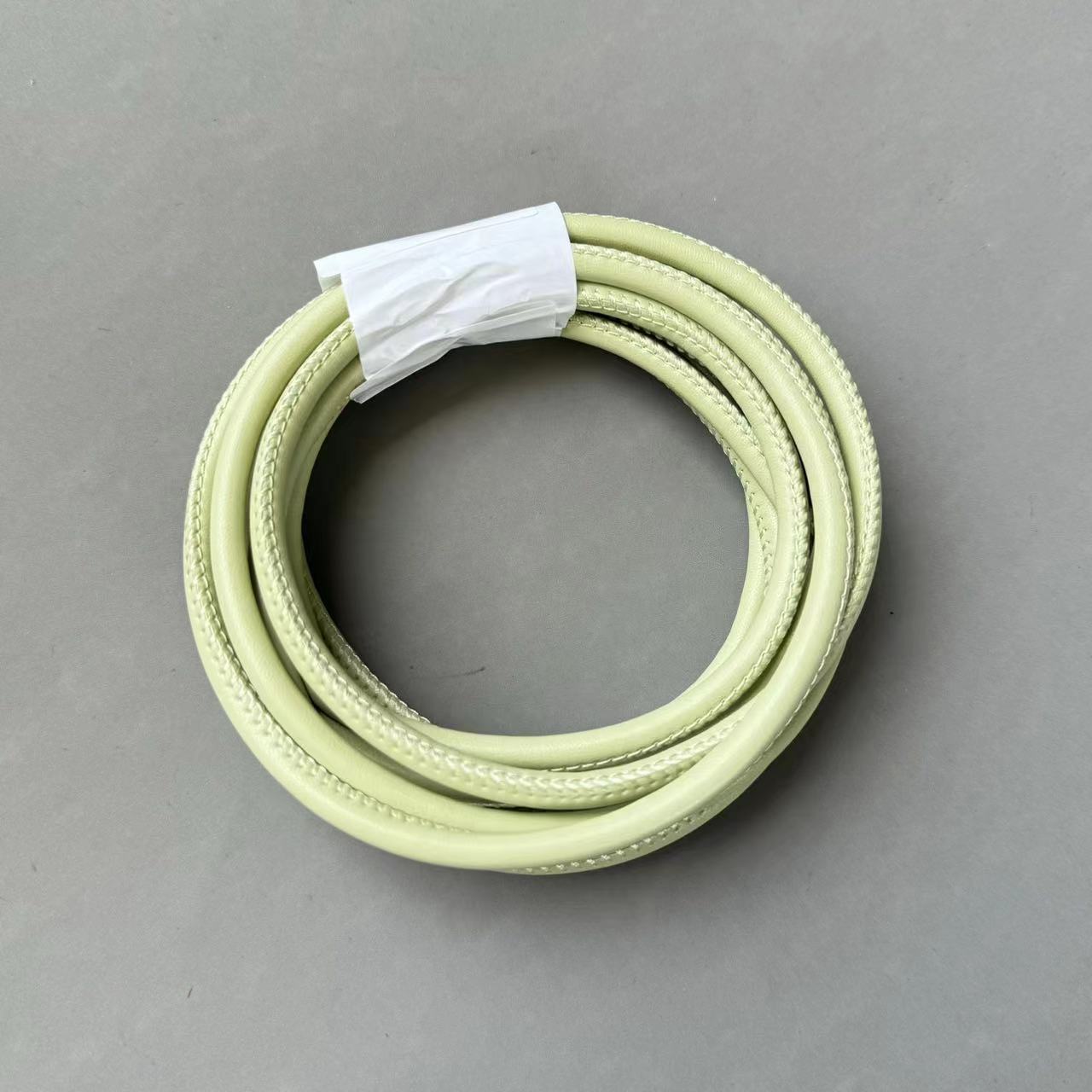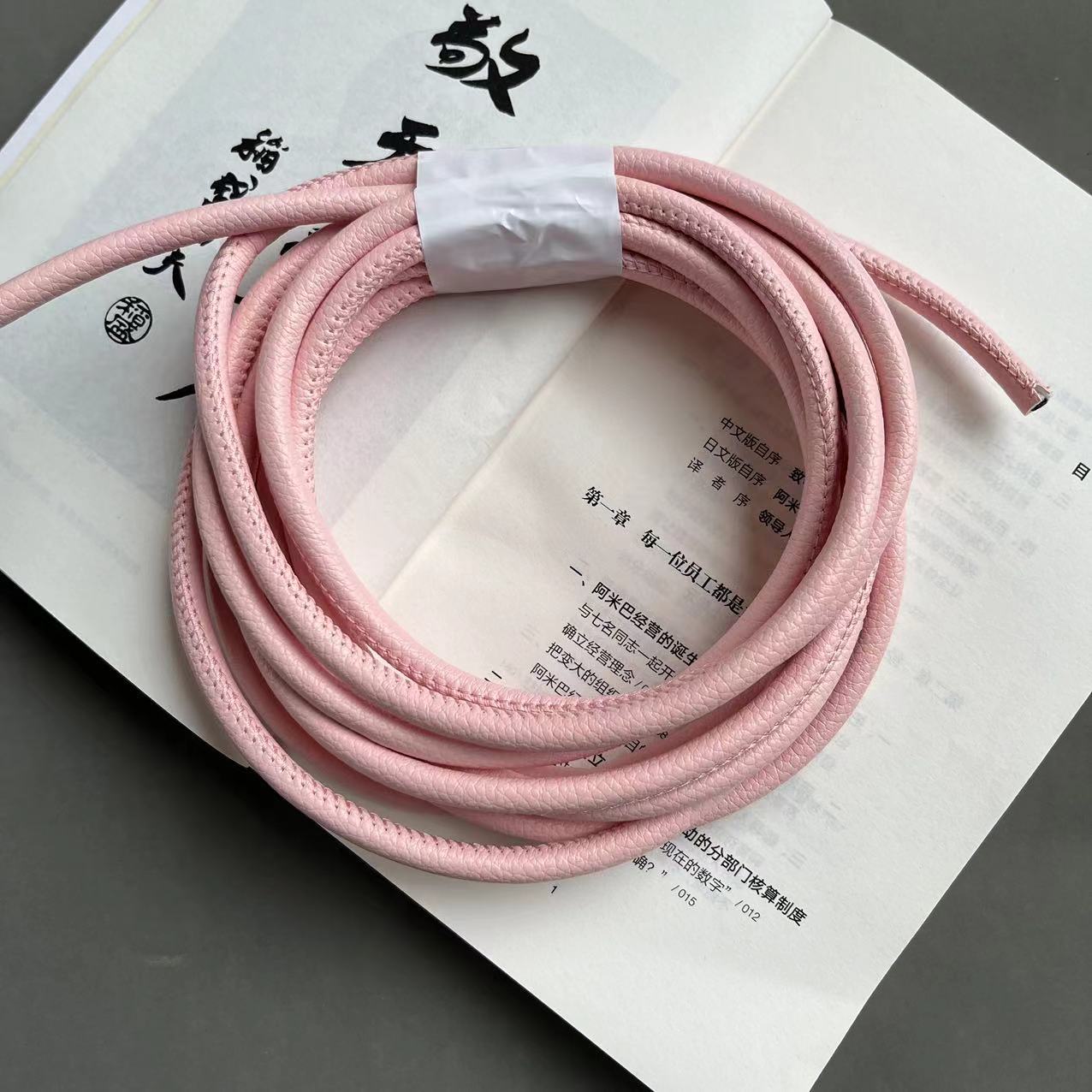 包工包料本厂只采用环保pu皮革生产。按色样颜色采购皮革时效高效,完全有能力解决各界大单/小单的皮绳生产要求。