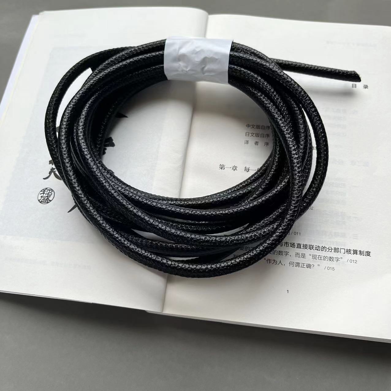 关于定制:本厂可做3.5-13.5mm粗皮绳(支持0.5mm定制要求)。拥有皮革色卡百余本。提供色样按需定制,小单定制(200米起)完全有能力高效承接,大大降低客户的采购时间成本。请提供色样或者编号,粗度,数量即可高效定制。
