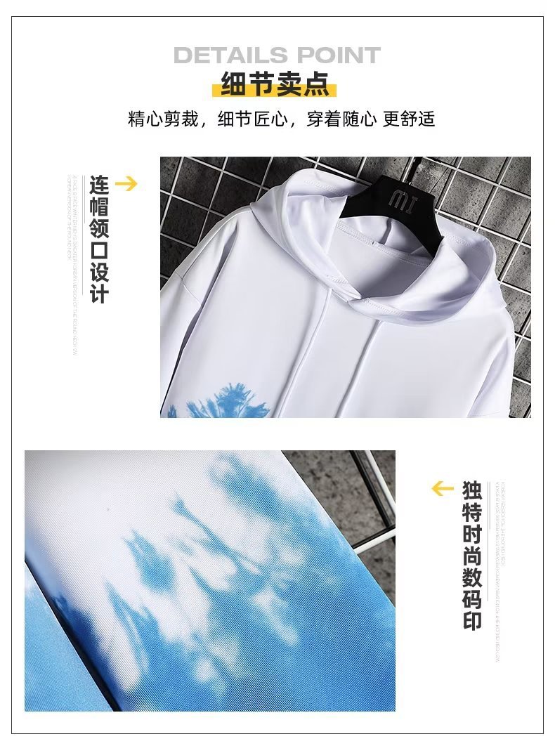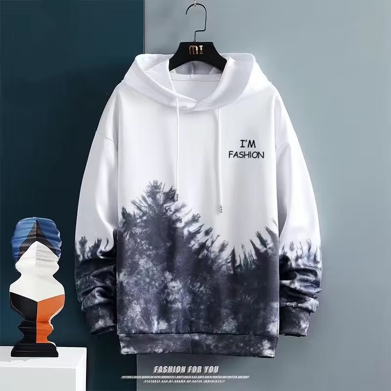 후드 스웨트 셔츠 세트 남자의 가을 새로운 유행 타이 다이 그라디언트 인쇄 남자의 코트 학생의 긴 소매 탑
