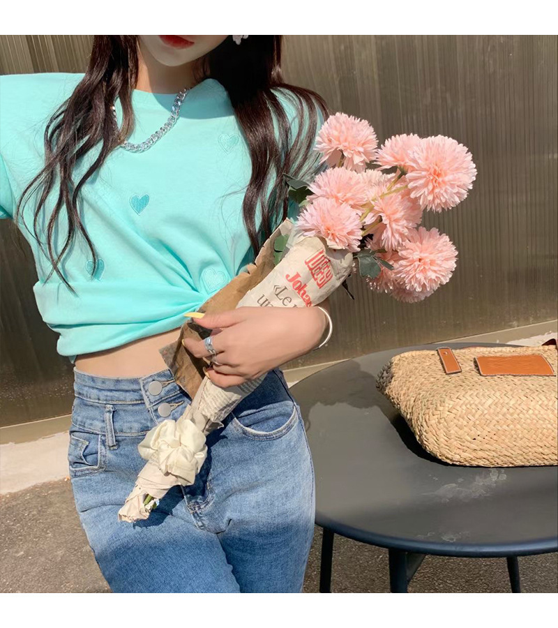 여성용 반팔 티셔츠 2025년 여름 신상 스타일리쉬한 라운드넥 하트 자수 루즈핏 한국 스타일 상의 크로스보더 여성복스토어 가기