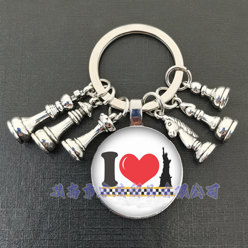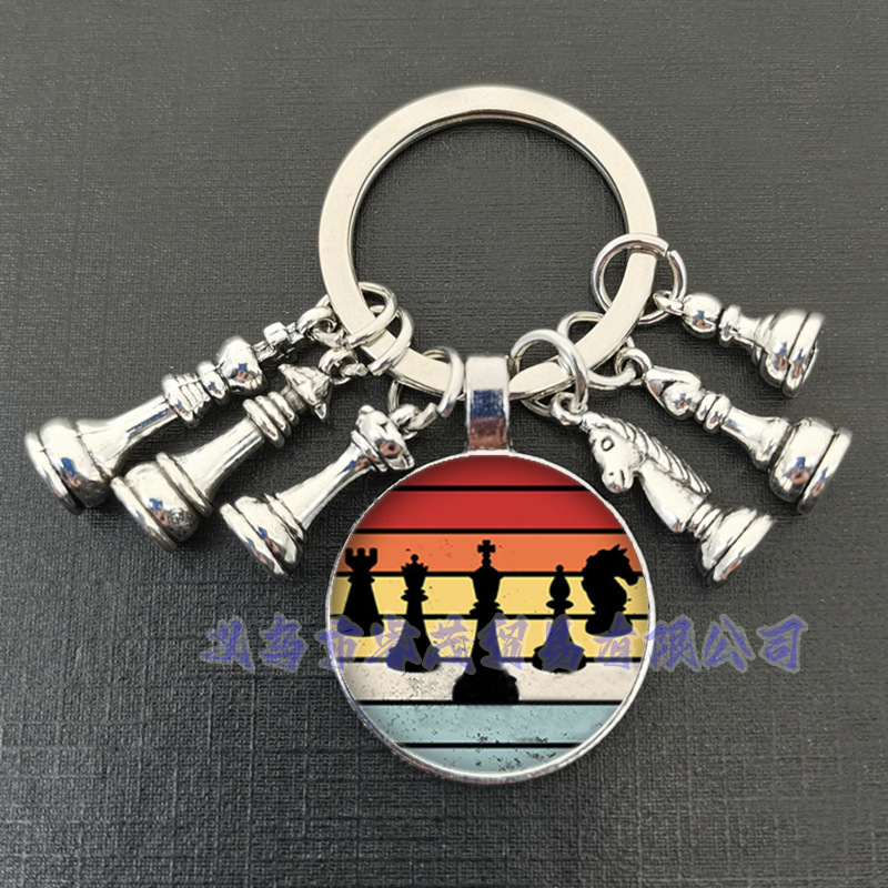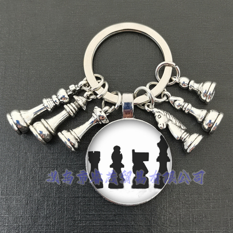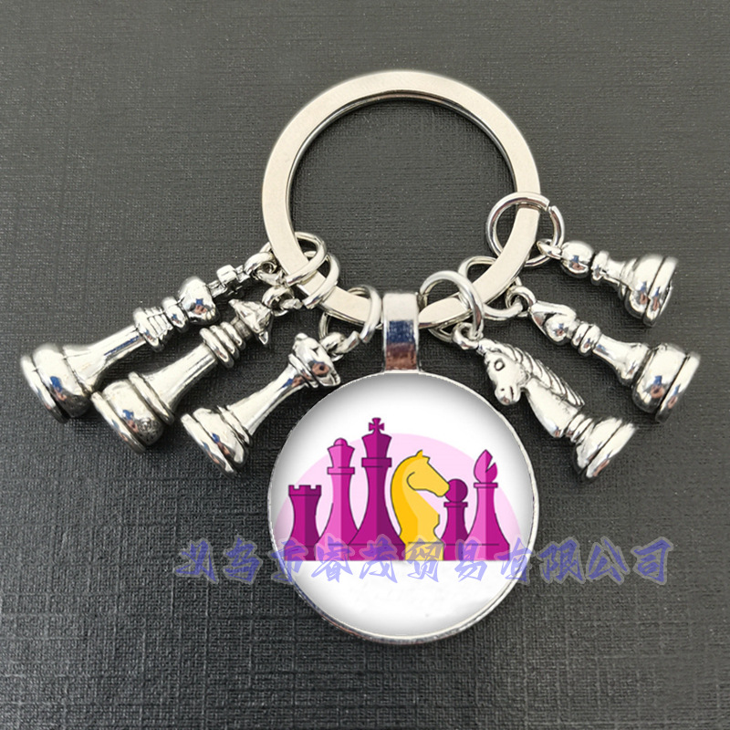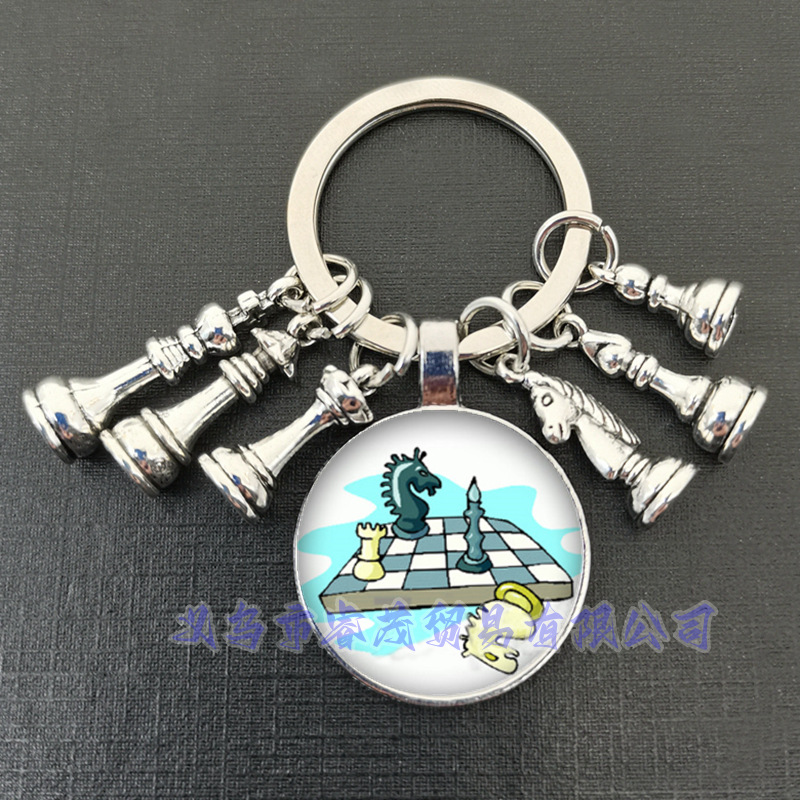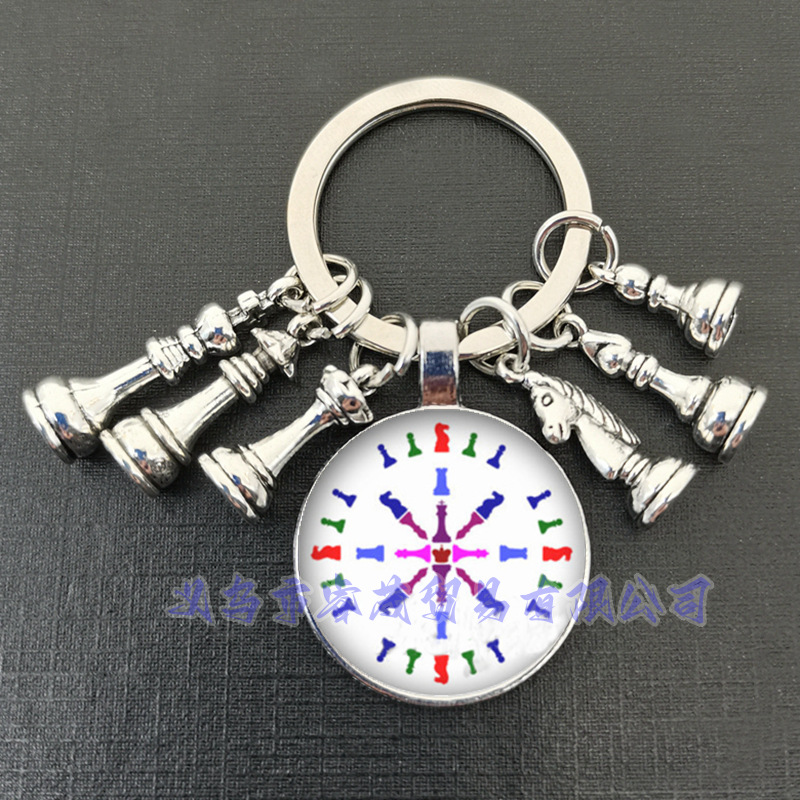 여왕 말과 말 코끼리 군인 체스 펜던트 키 링 시간 보석 선물 키 체인스토어 가기
