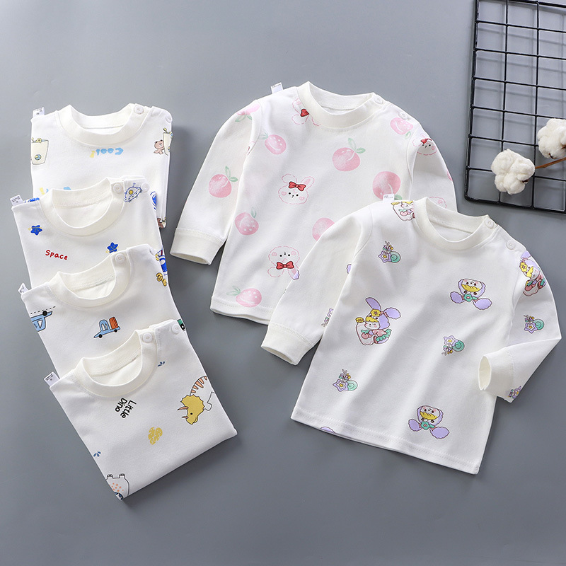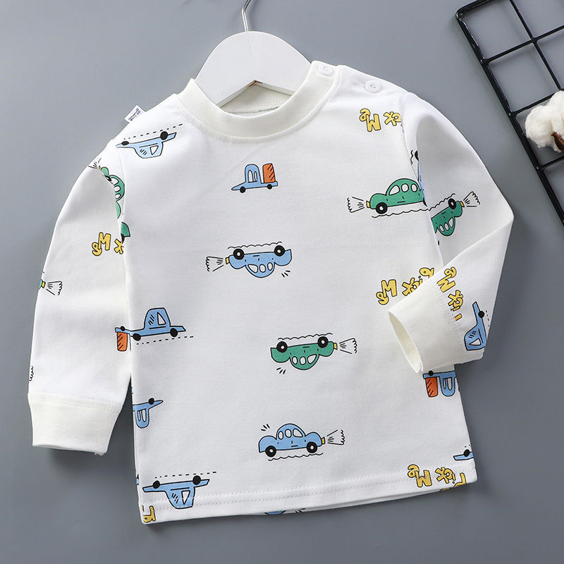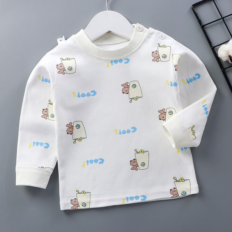 아기 면 긴 소매 싱글 탑 어린이 가을 옷 남아 여아 속옷 아기 기본 셔츠 봄과 가을 잠옷 스웨터