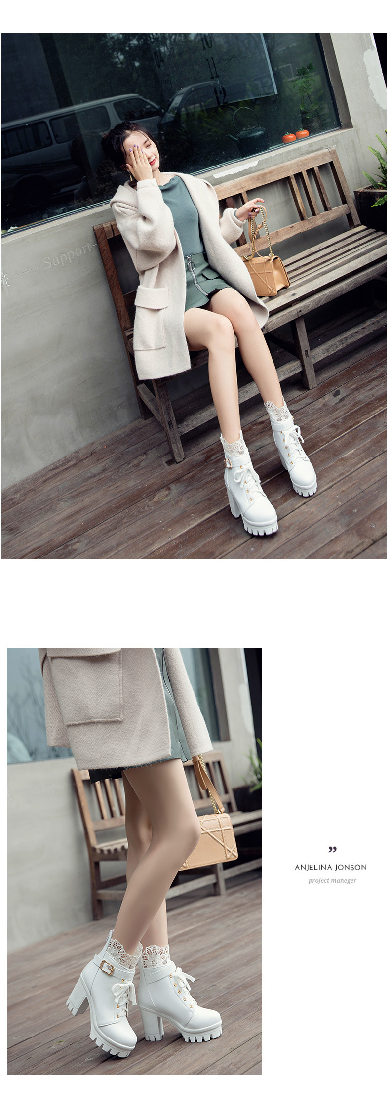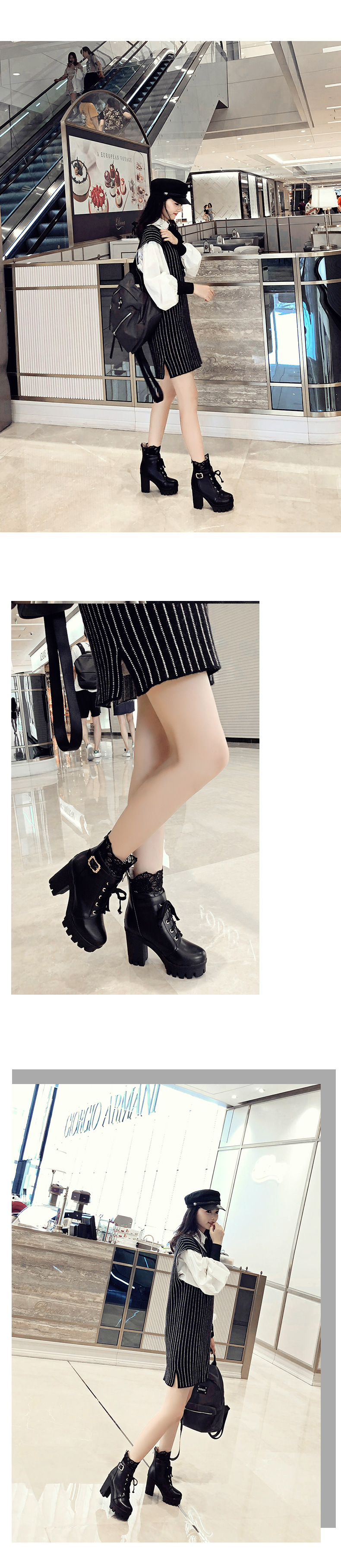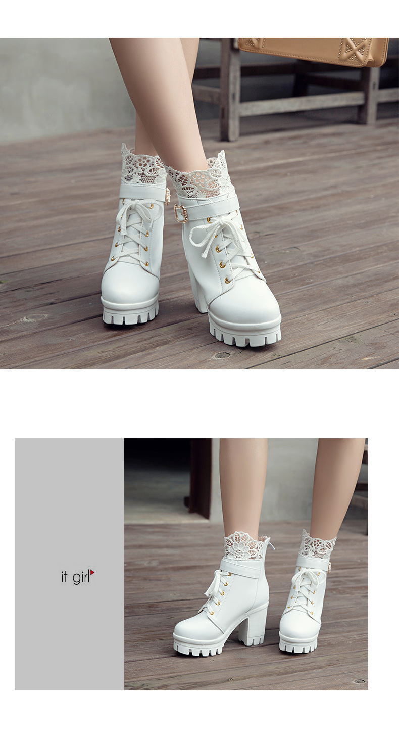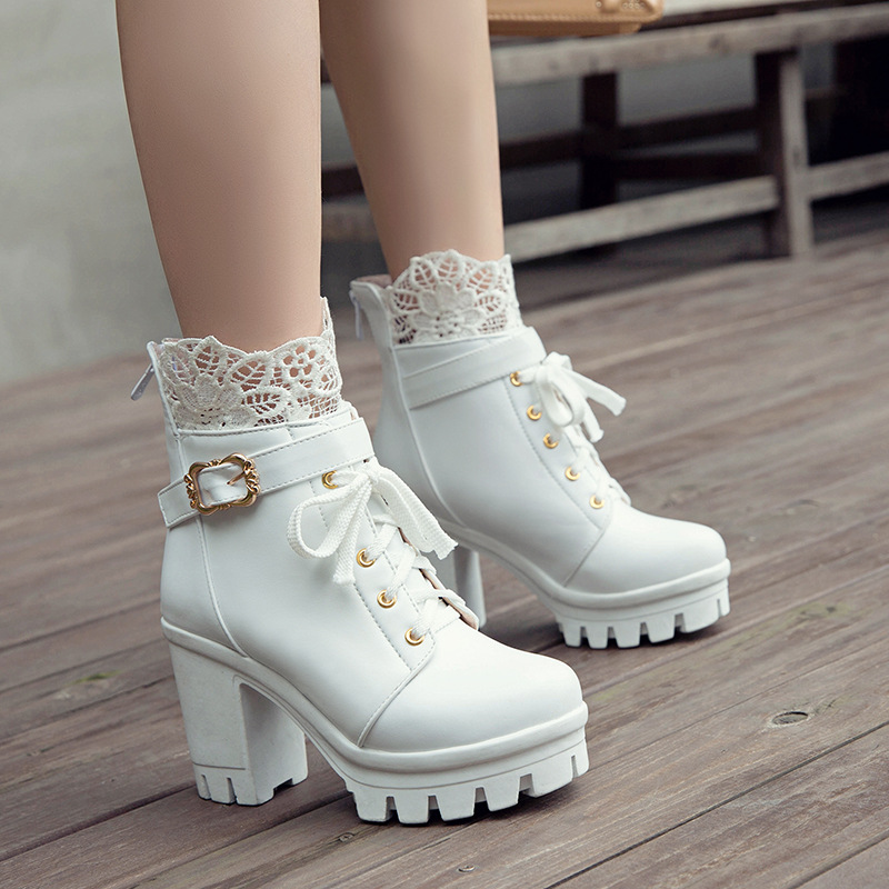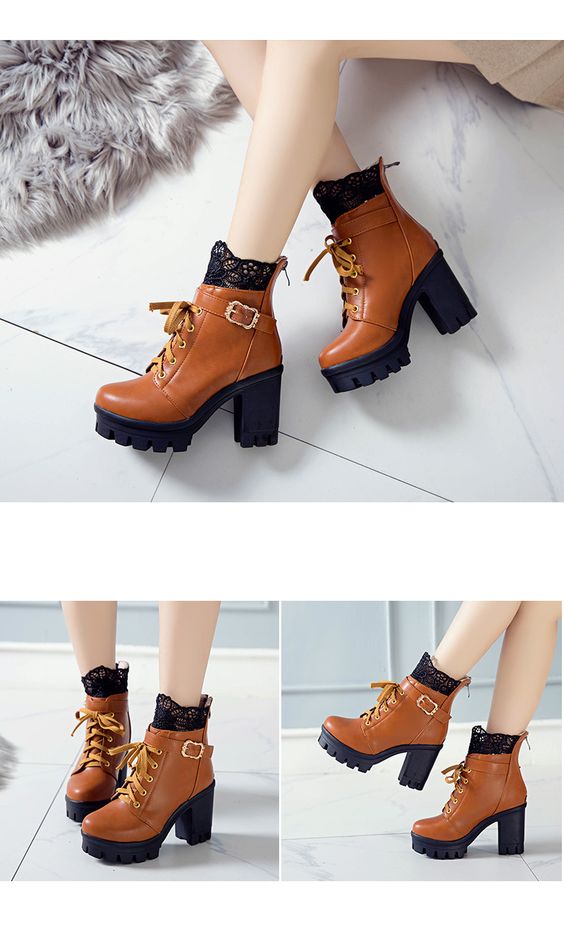 새로운 레이스 레이스 짧은 부츠 벨트 버클 레이스 마틴 부츠 두꺼운 힐 하이힐 부츠 플러스 사이즈 해외 무역 부츠 아마존