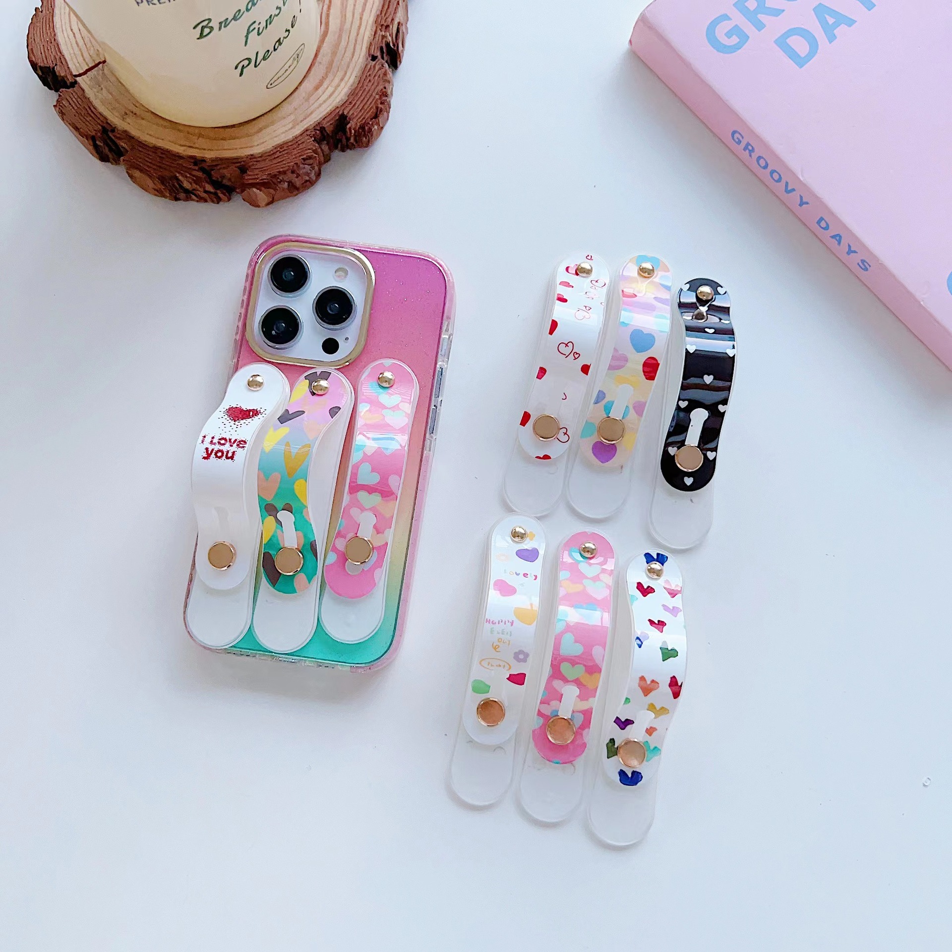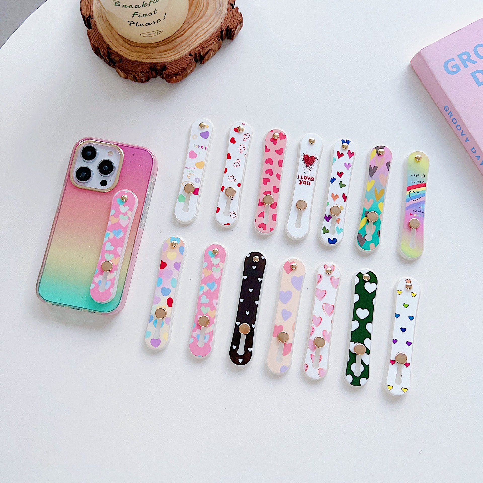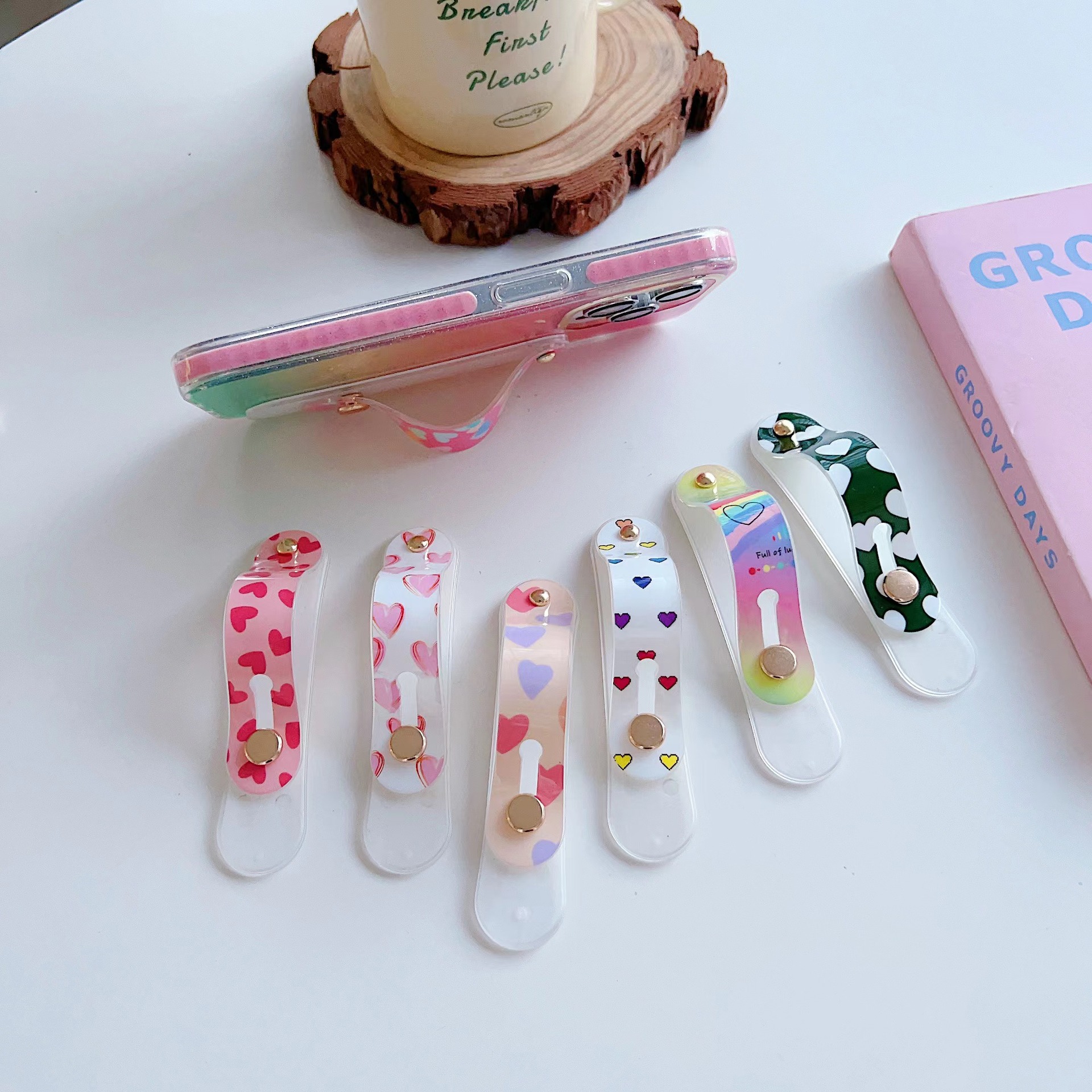 남성과 여성의 휴대 전화 케이스 손목 스트랩 손가락 자체 접착 게으른 사람 브래킷 작은 사랑 푸시 풀 휴대 전화 데스크탑 브래킷 색상