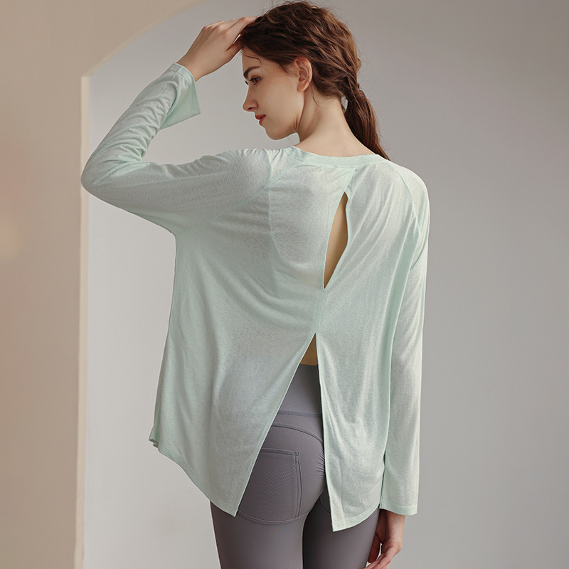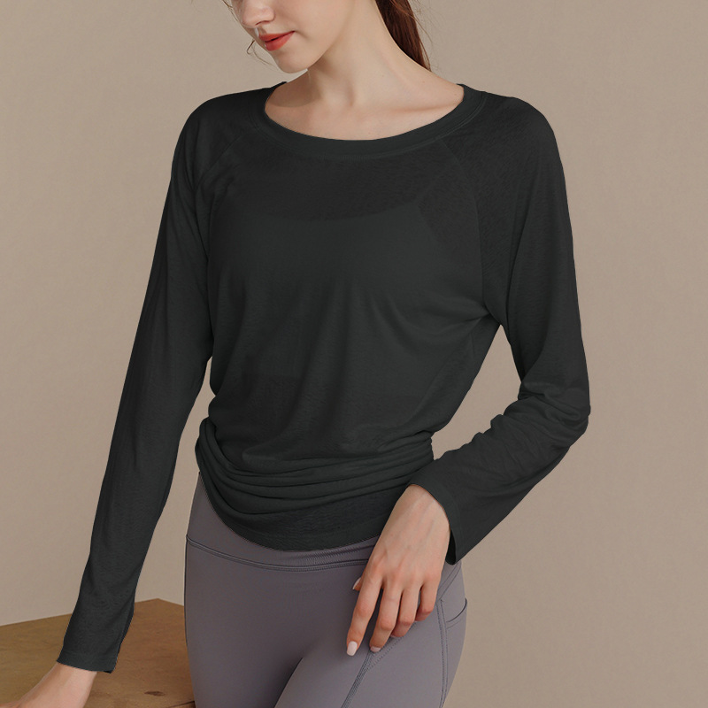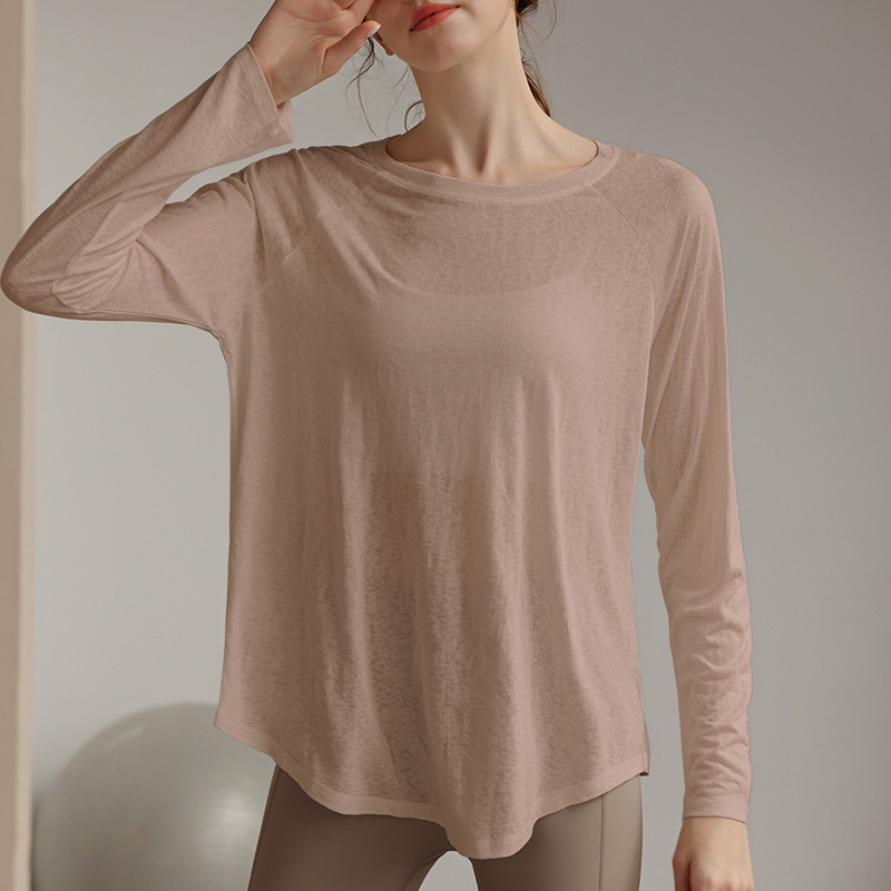텐셀 눈송이 요가 의류 티셔츠 여자의 가을 느슨한 슬리밍 스포츠 블라우스 필라테스 전문 훈련 피트니스 긴 소매스토어 가기