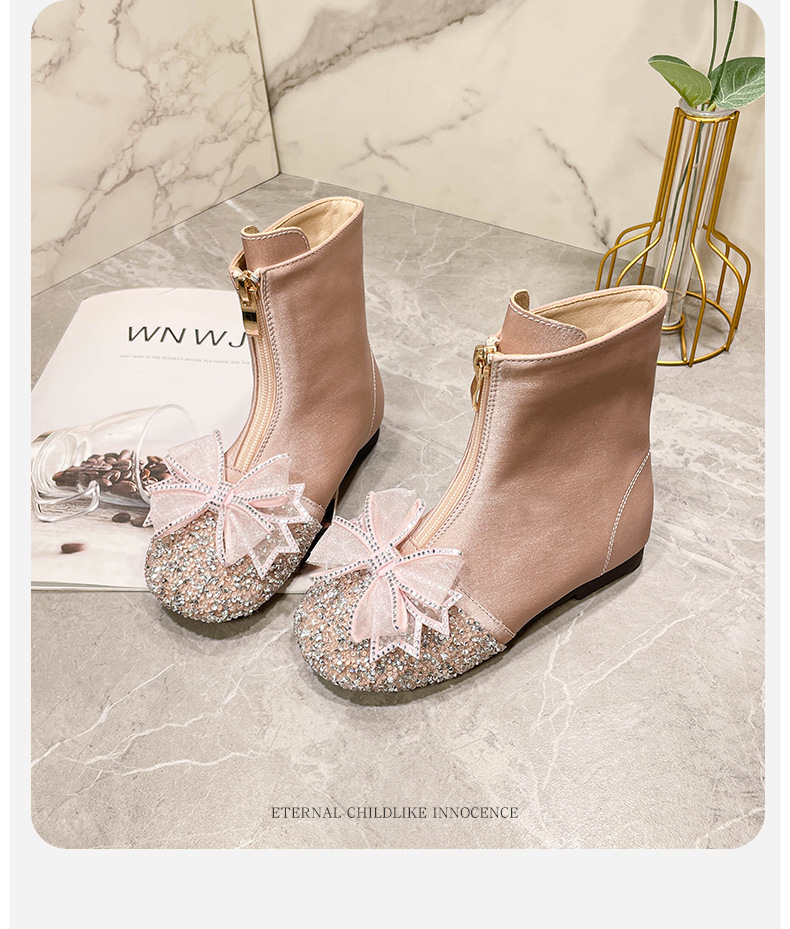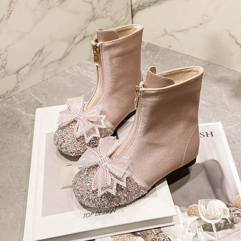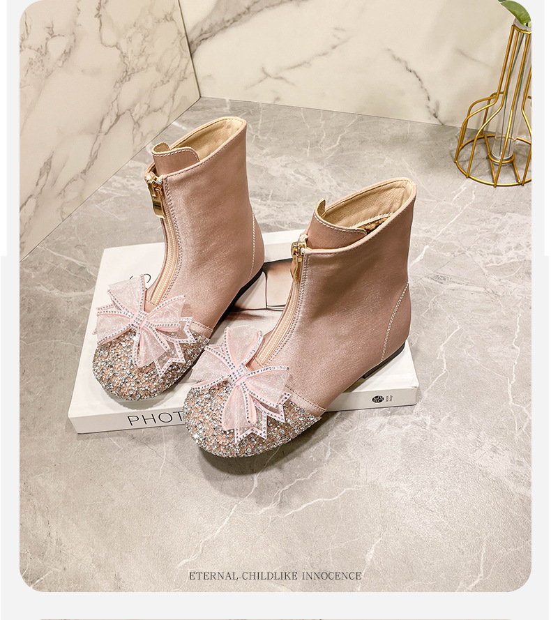 소녀의 마틴 부츠 가을과 겨울 짧은 부츠 어린 소녀 싱글 부츠 어린이 플랫 부츠 기모 엘사 공주 부츠 부드러운 바닥