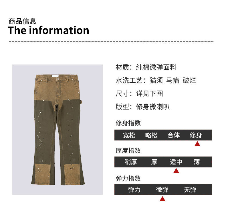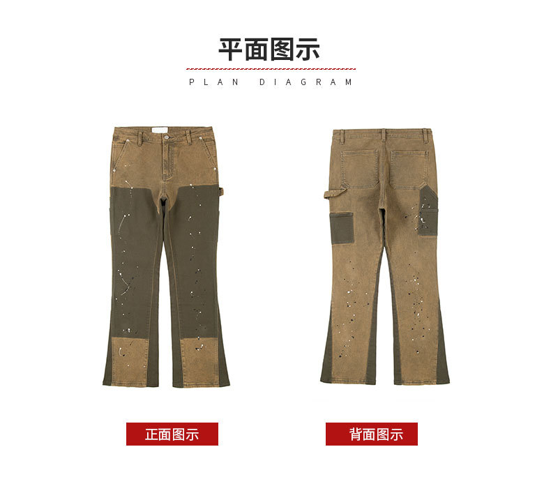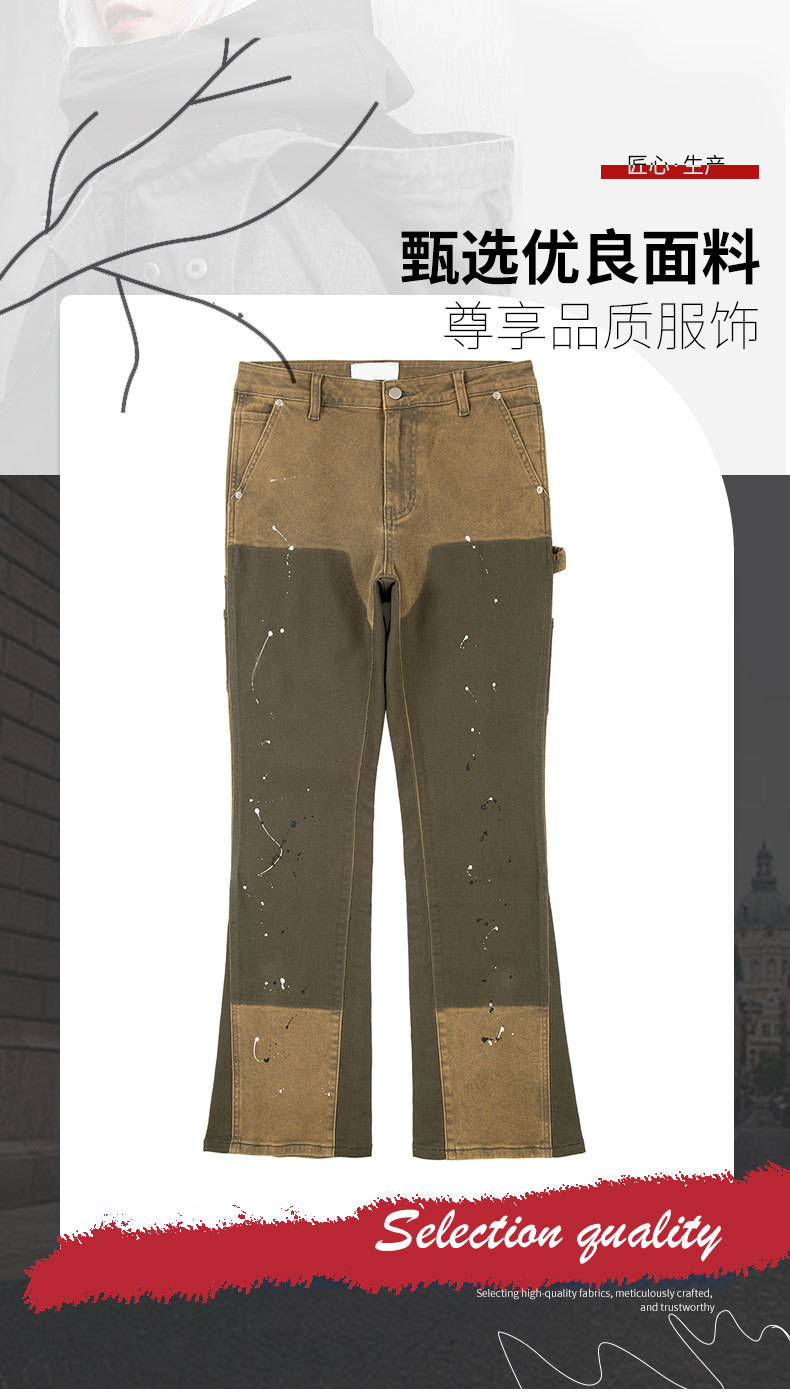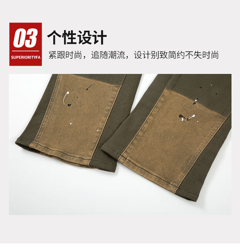 크리 에이 티브 패션 새로운 카키 스티칭 마이크로 총알 펠링 청바지 남성 스티칭 마이크로 총알 스트레이트 바지 도매