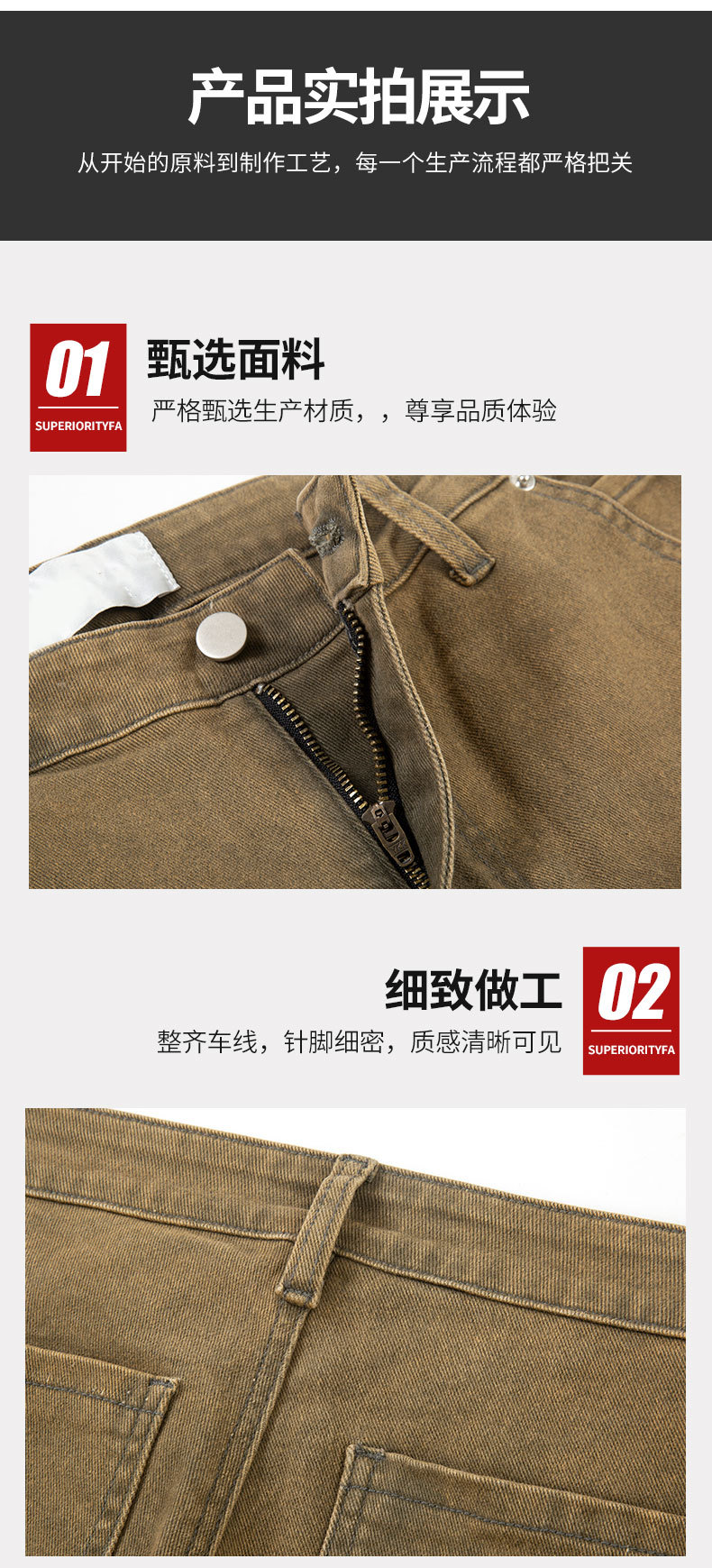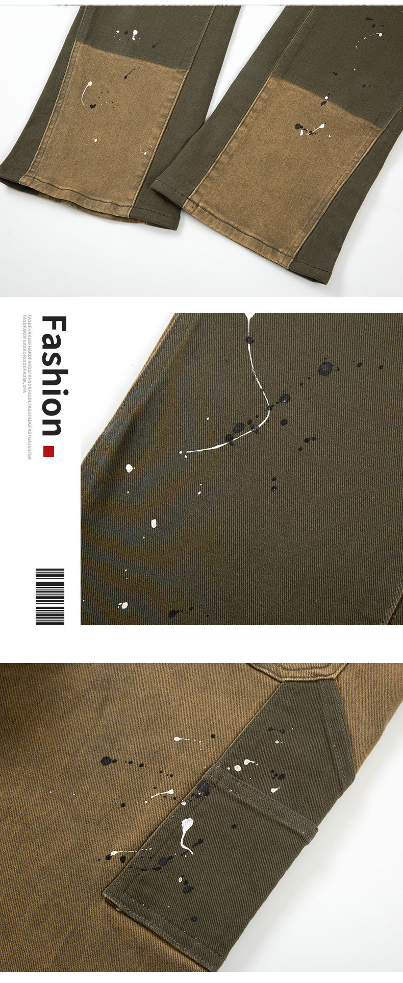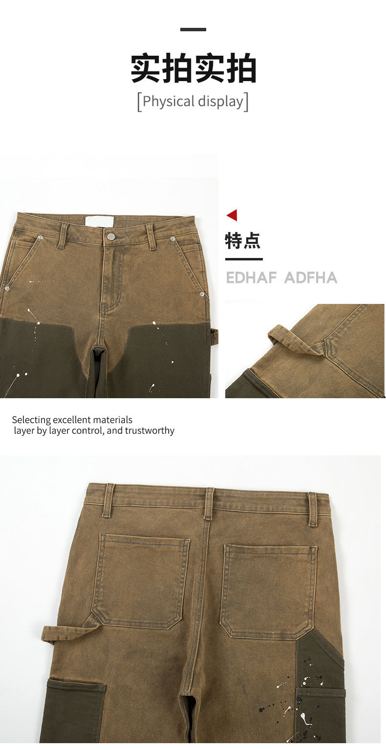 크리 에이 티브 패션 새로운 카키 스티칭 마이크로 총알 펠링 청바지 남성 스티칭 마이크로 총알 스트레이트 바지 도매