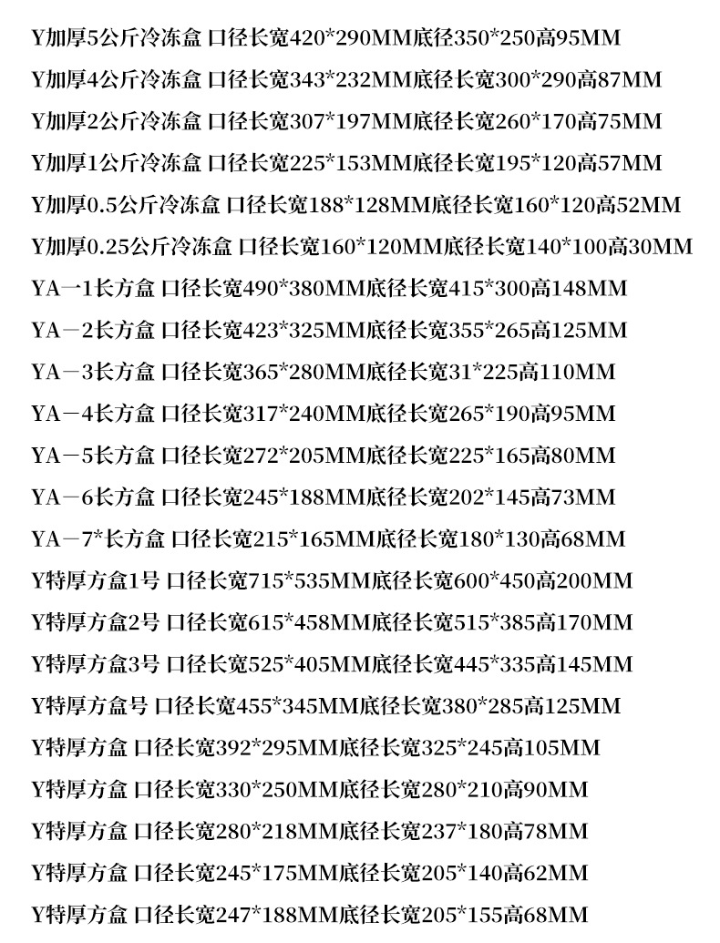 • 외부 두꺼운 사각형 상자 No. 구경 길이 및 너비 330*25 바닥 직경 길이 및 너비 280*210 높이 90