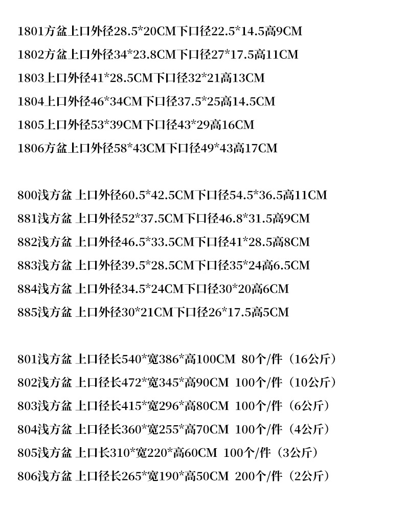 • 801 얕은 정사각형 분지 상부 구경 길이 540 * 폭 386 * 높이 100 = 80/조각 (16kg)