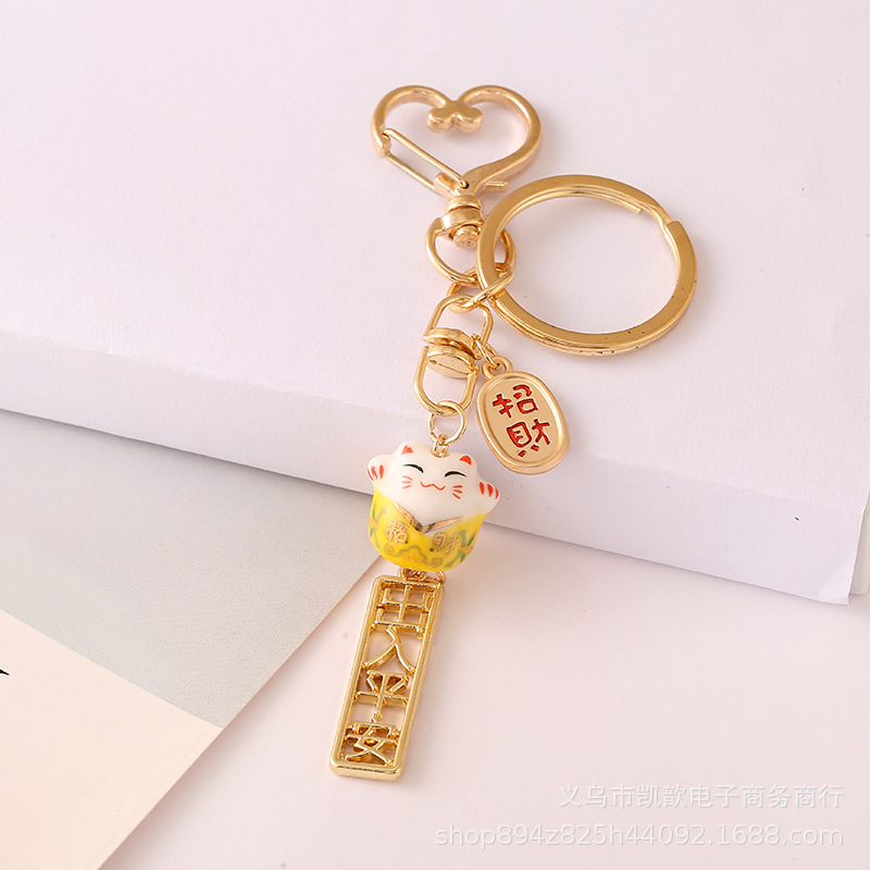 • 럭키 캣 옐로우 열쇠 고리 "안전]