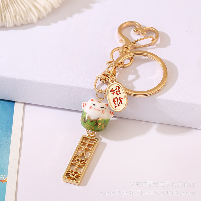 • 행운의 고양이 녹색 열쇠 고리 "안전]