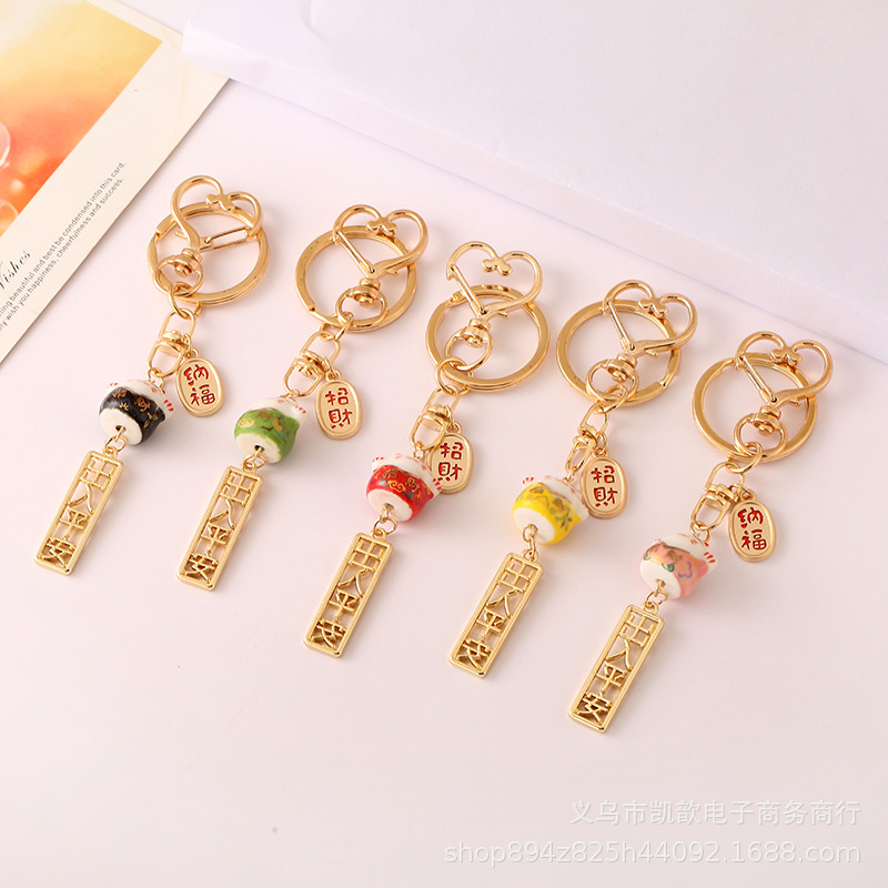 귀여운 소녀 하트 세라믹 행운의 고양이 열쇠 고리 안전 금속 열쇠 고리 체인 펜던트 간단한 교수형 장식품스토어 가기