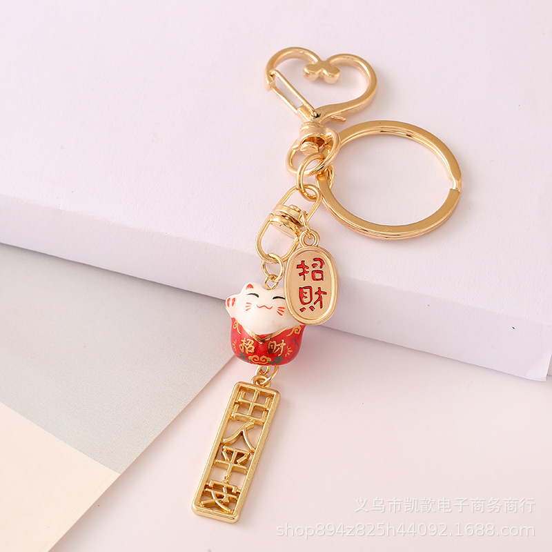 • 행운의 고양이 핑크 열쇠 고리 "안전]