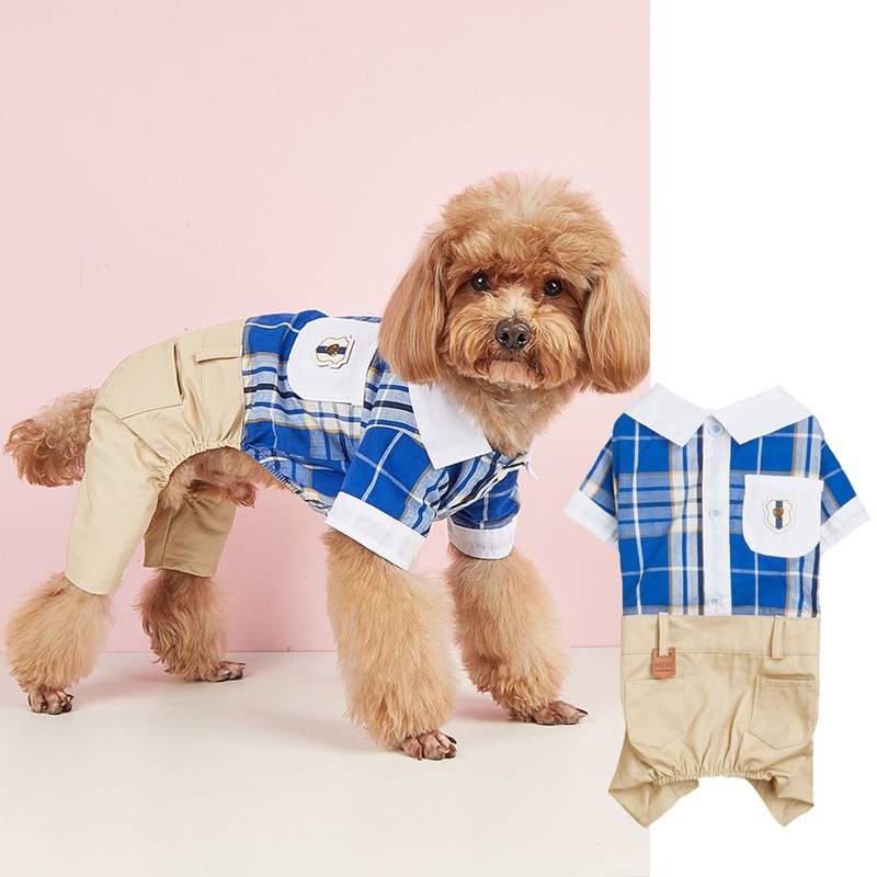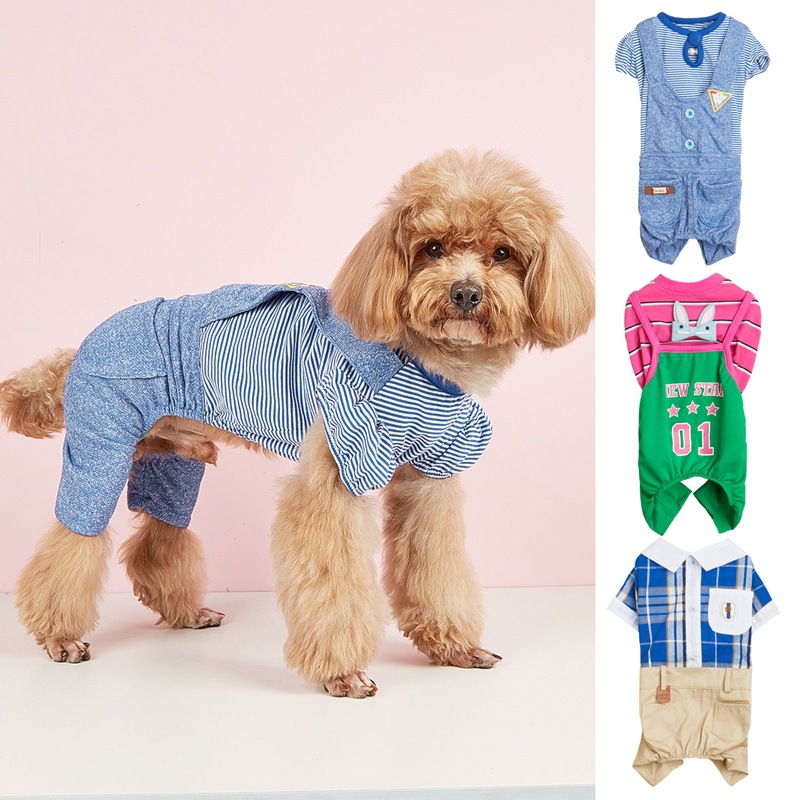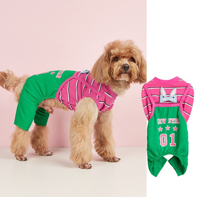 宠趣四脚衣俏皮撞色背带裤T恤兔子蝴蝶结数字皮标衬衫中小型犬
