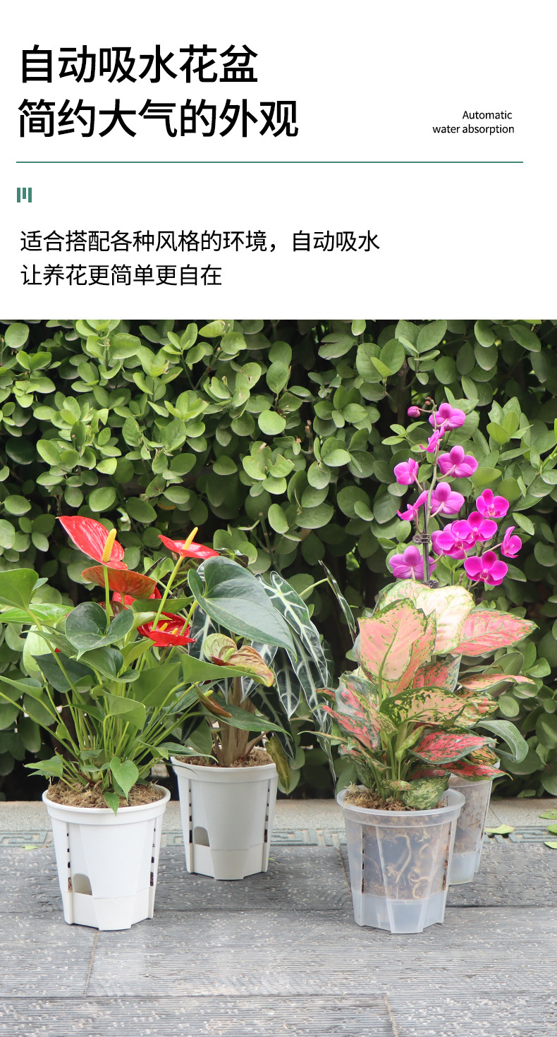 아마존 새로운 물 저장 투명 녹색 산 분지 호접란 통기성 뿌리 통제 분지 자체 흡수성 꽃 냄비 플라스틱 게으른 분지스토어 가기