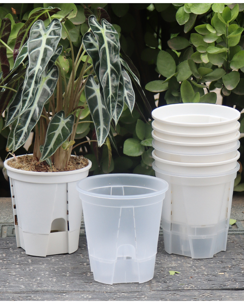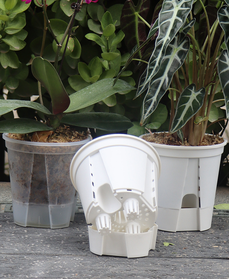 아마존 새로운 물 저장 투명 녹색 산 분지 호접란 통기성 뿌리 통제 분지 자체 흡수성 꽃 냄비 플라스틱 게으른 분지