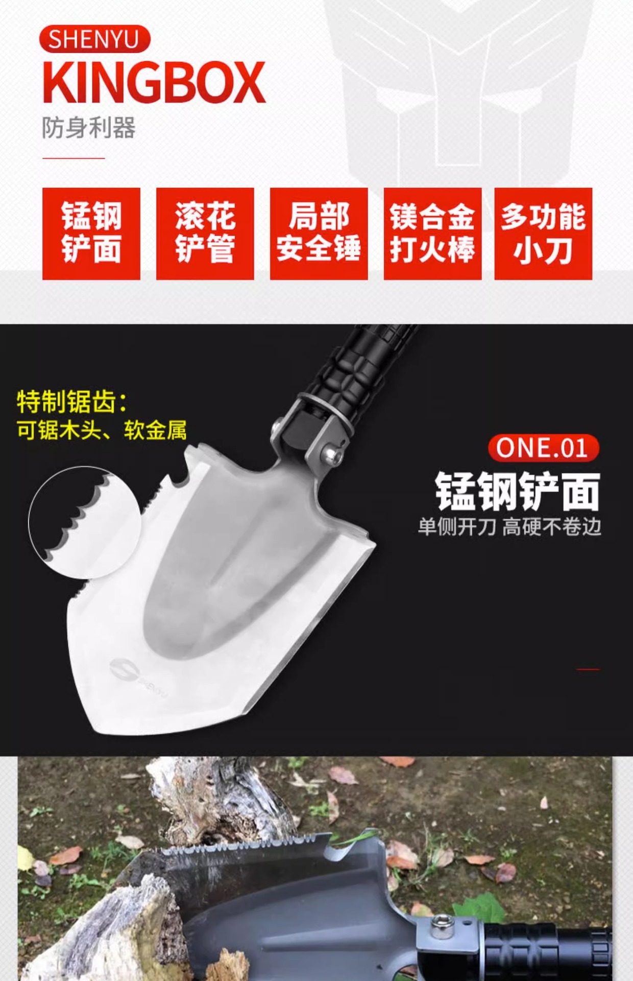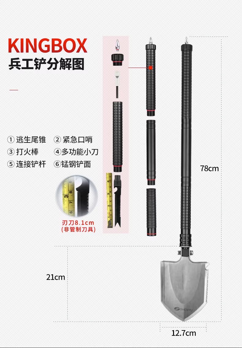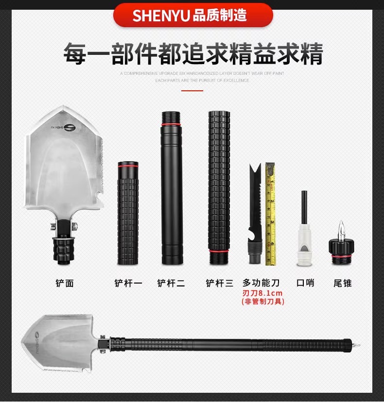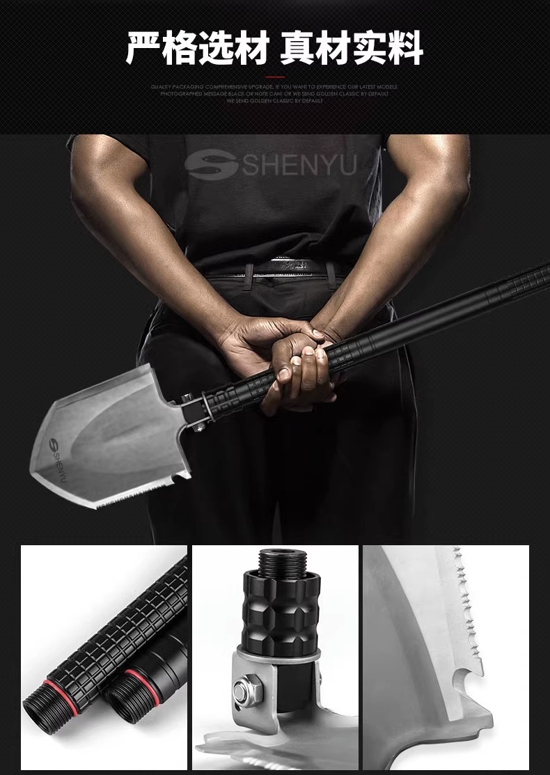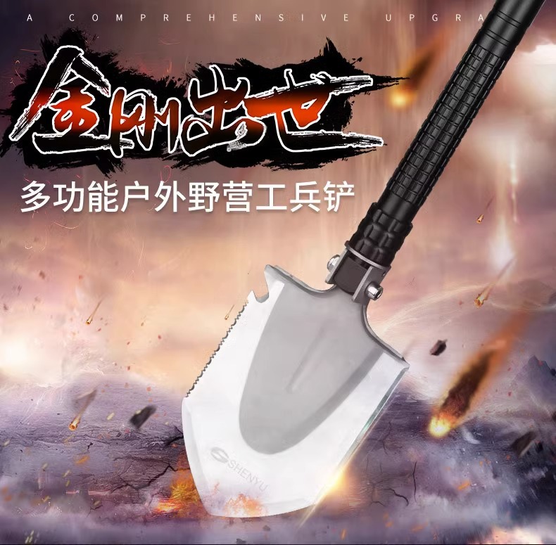 망간 강철 다기능 군인 삽 캠핑 차량 장착 군인 삽 소형 삽 야외 장비 휴대용 접이식 삽스토어 가기