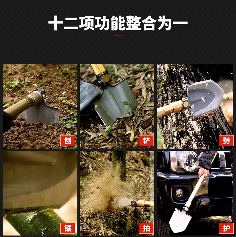 망간 강철 다기능 군인 삽 캠핑 차량 장착 군인 삽 소형 삽 야외 장비 휴대용 접이식 삽