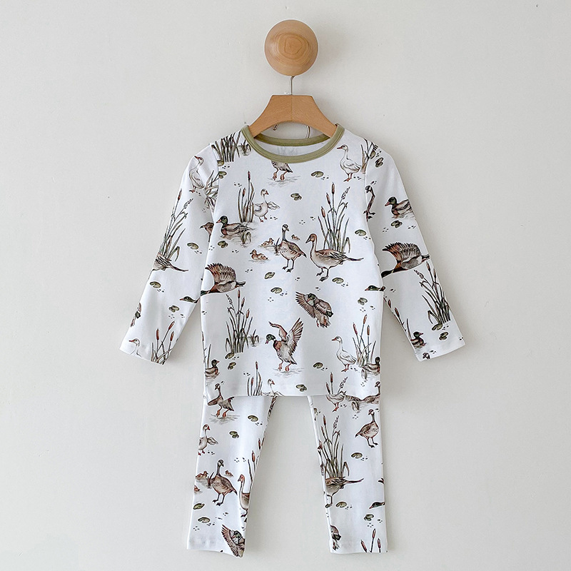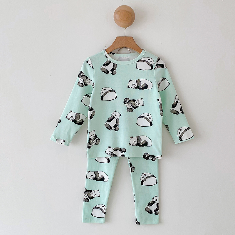 2025 봄 스타일 ins 스타일 어린이 가정 의류 소녀 잠옷 세트 소년 긴팔 바지 아기 가을 옷과 긴 바지스토어 가기