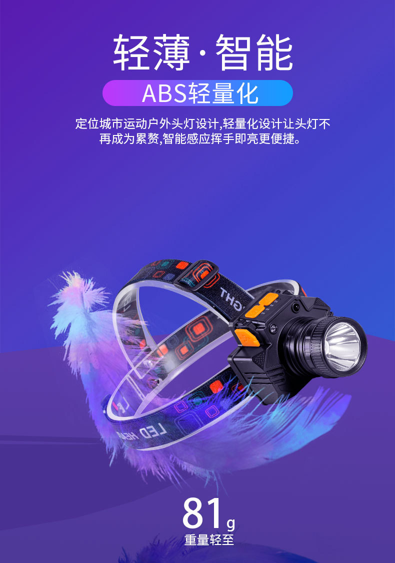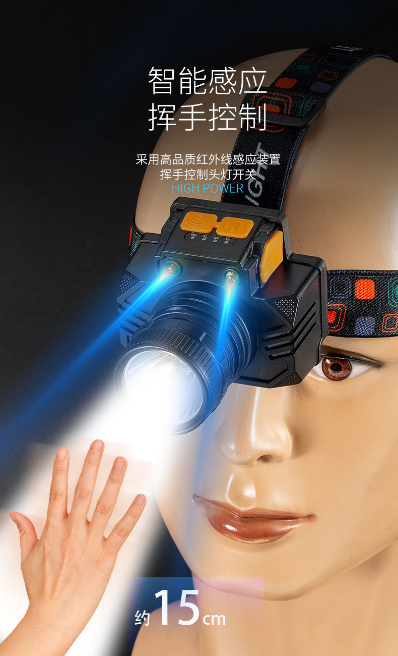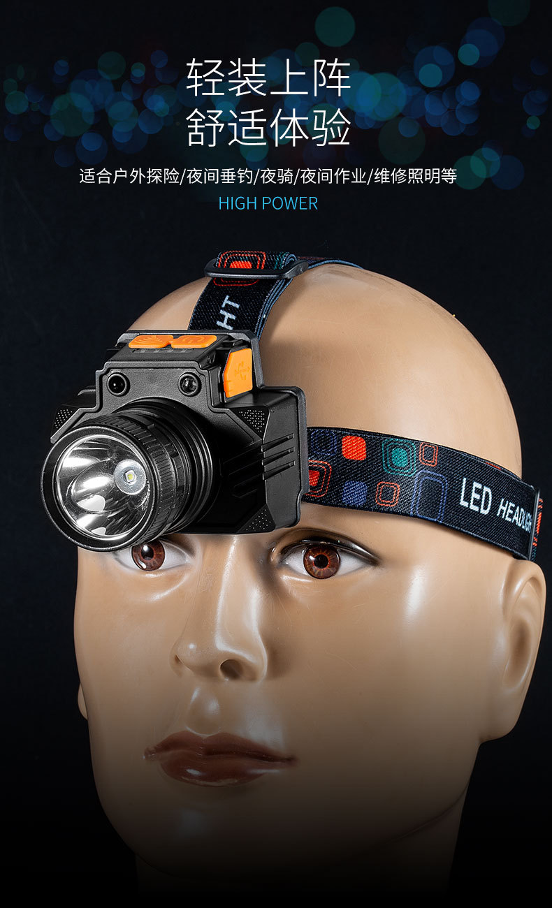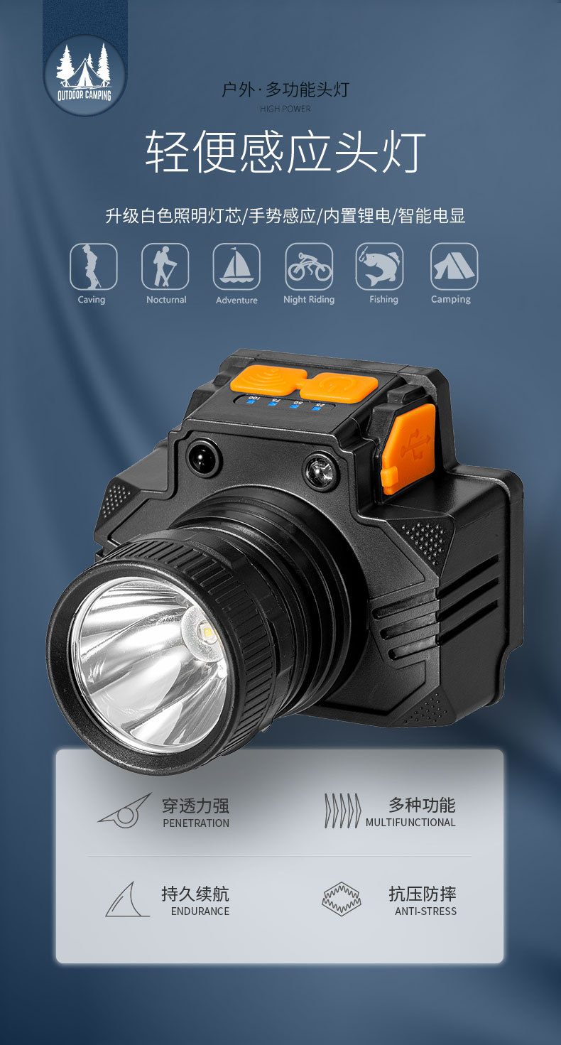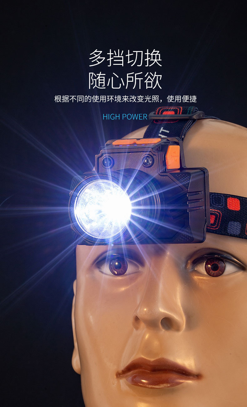 야외 조명 흔들기 유도 헤드 라이트 충전식 고휘도 긴 지구력 야외 스포츠 야간 낚시 필수 도구 램프