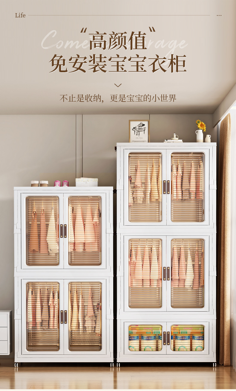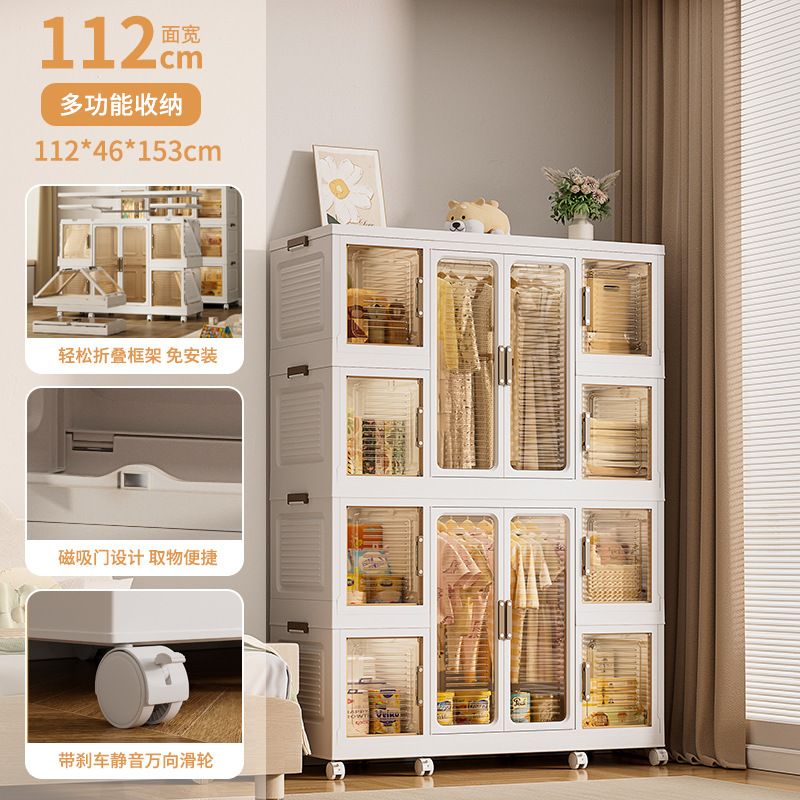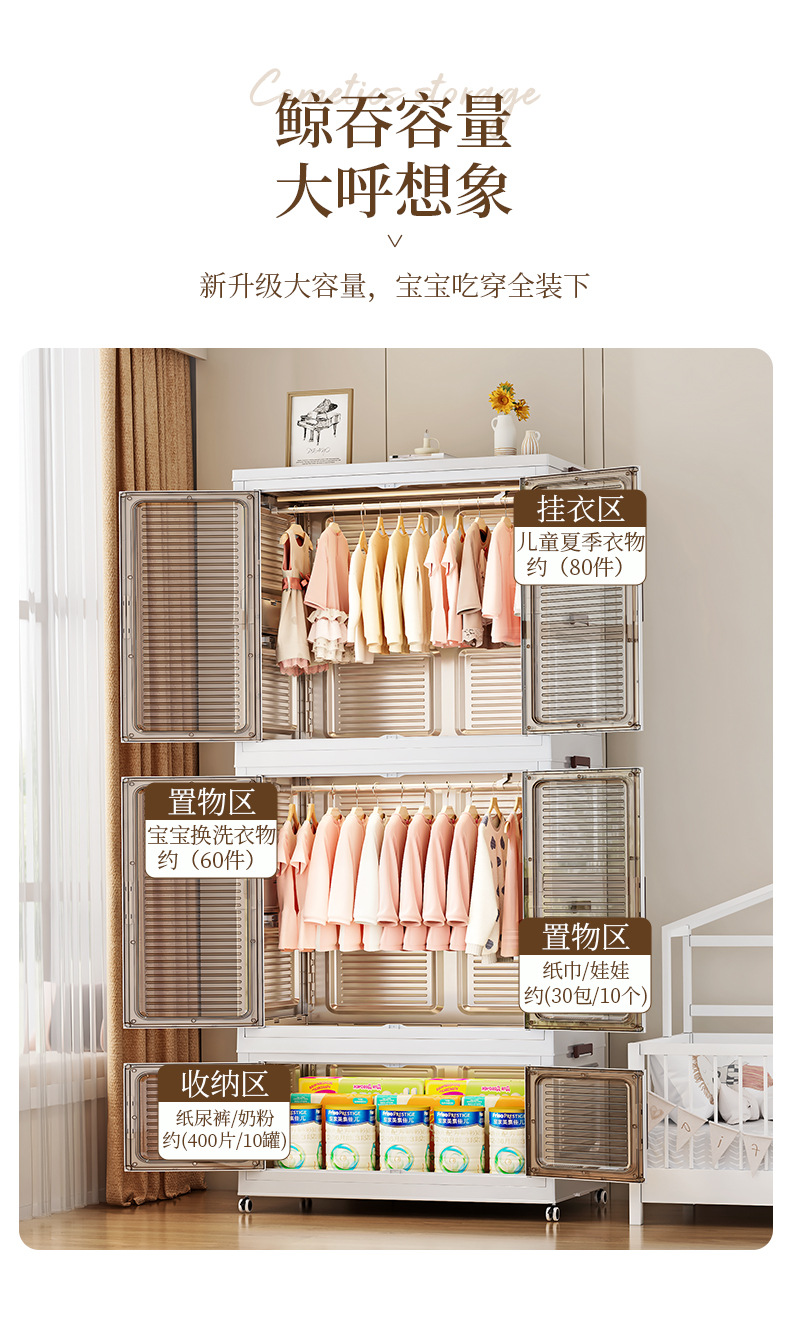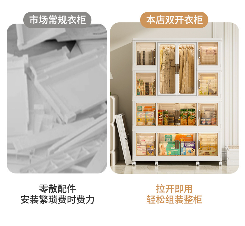 침실 설치 무료 접이식 옷 보관 캐비닛 다층 이중 도어 아기 옷장 교수형 옷 배열 어린이 옷장스토어 가기