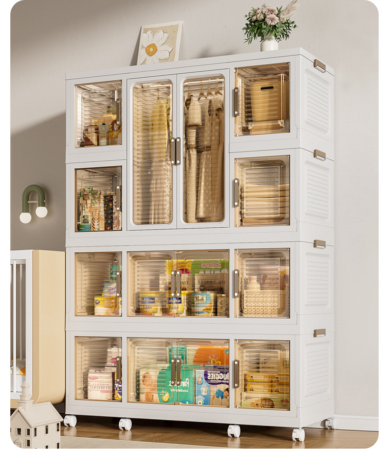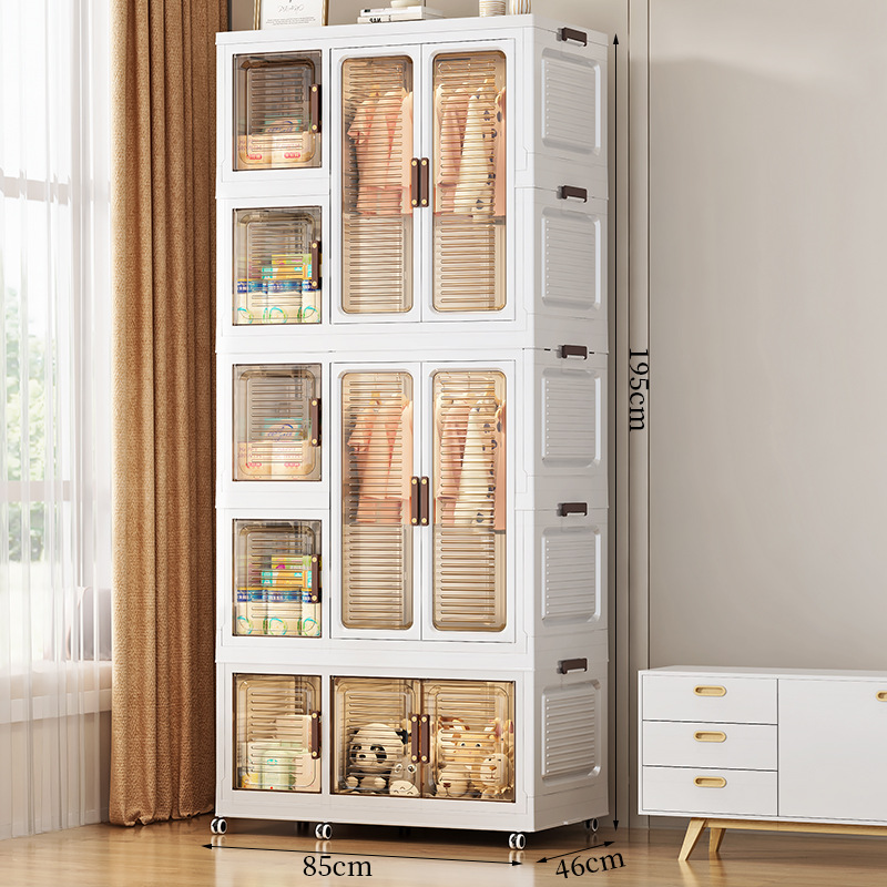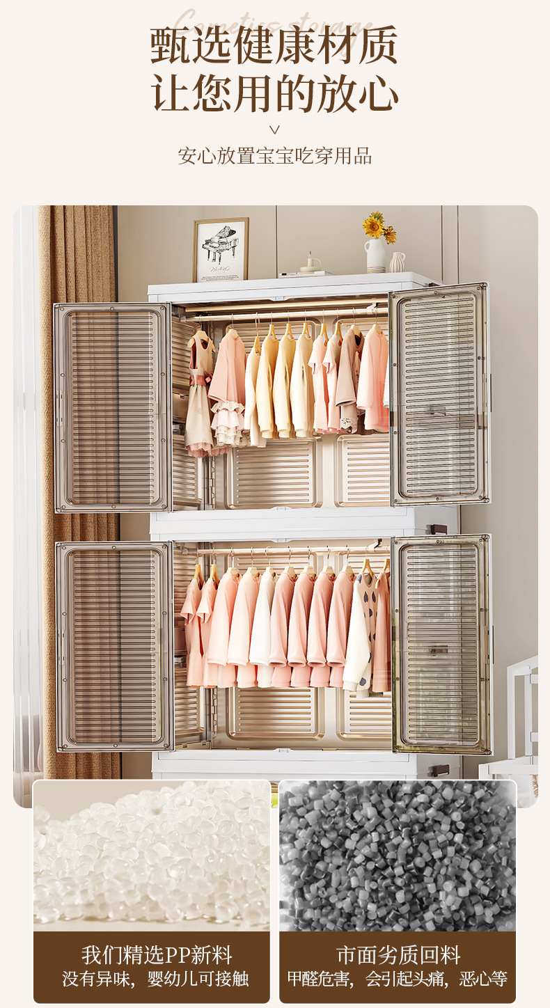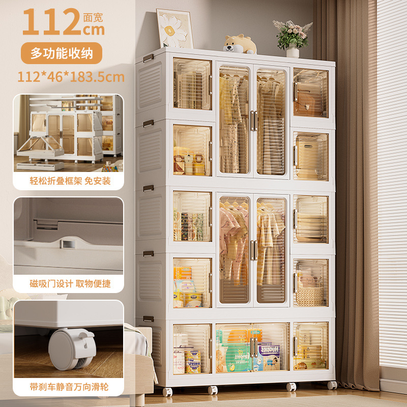 침실 설치 무료 접이식 옷 보관 캐비닛 다층 이중 도어 아기 옷장 교수형 옷 배열 어린이 옷장