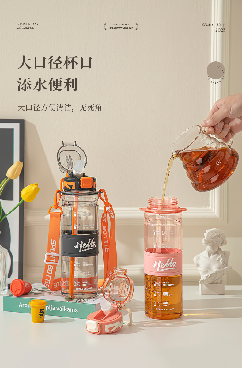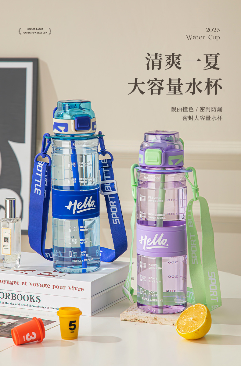소리 폭발 네트 레드 워터 컵 아웃도어 스포츠 피트니스 플라스틱 주전자 컵 하이 컬러 값 레터 도매