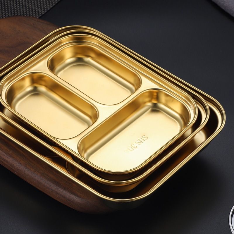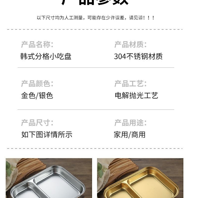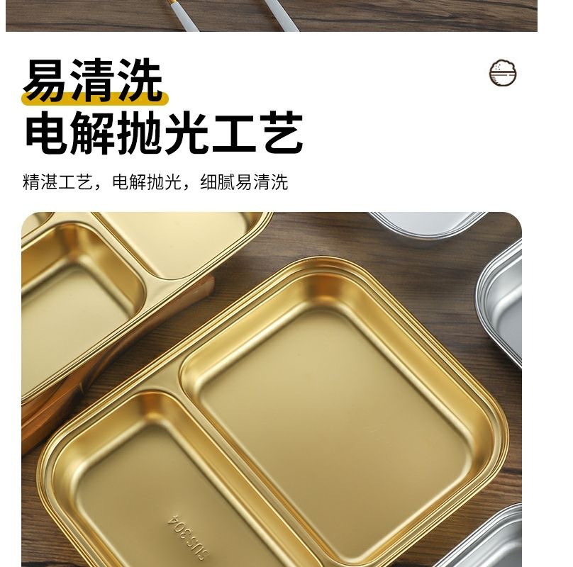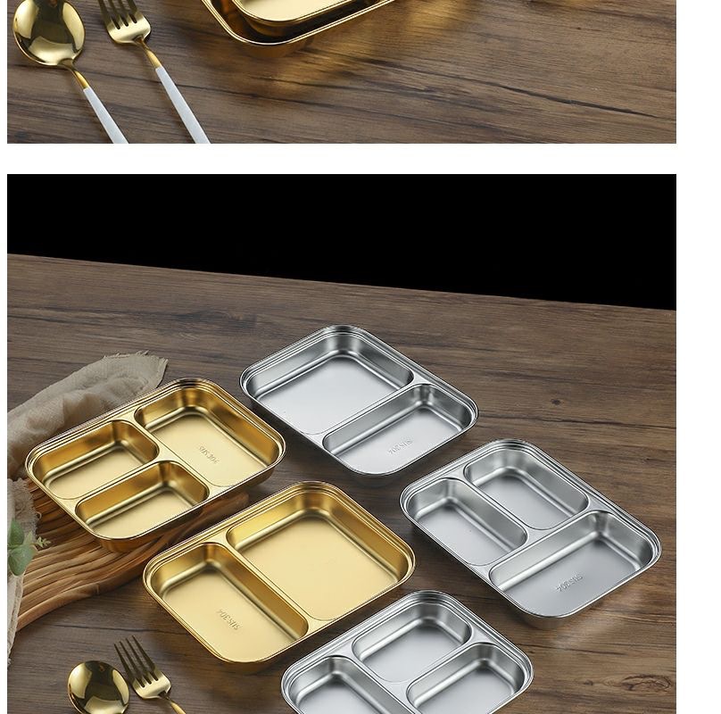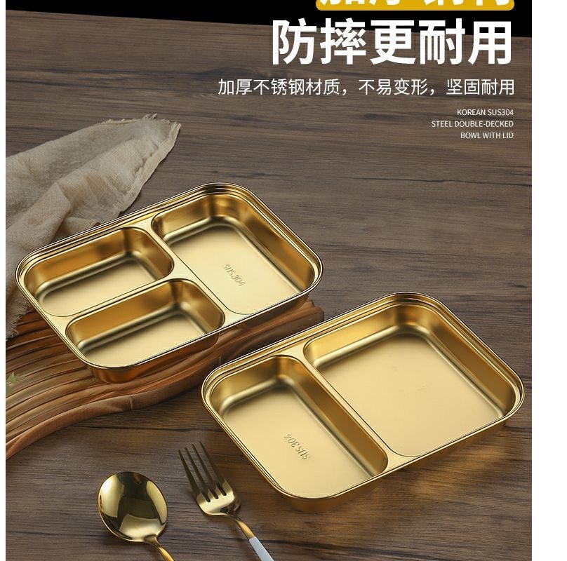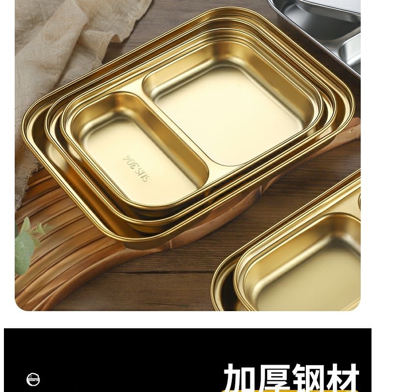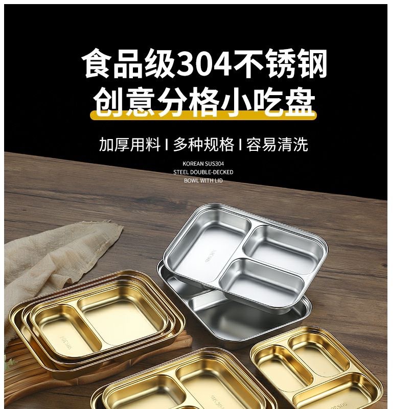 한국식 스테인레스 304 칸 박스 스낵 플레이트 황금 2 칸 3 칸 사각 접시 디너 플레이트 트레이 소스 플레이트스토어 가기