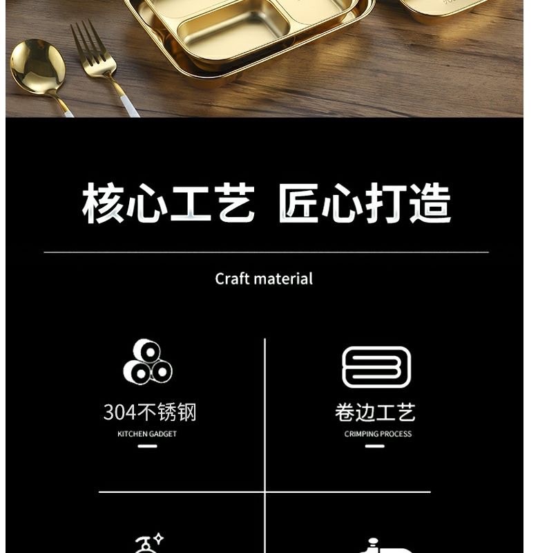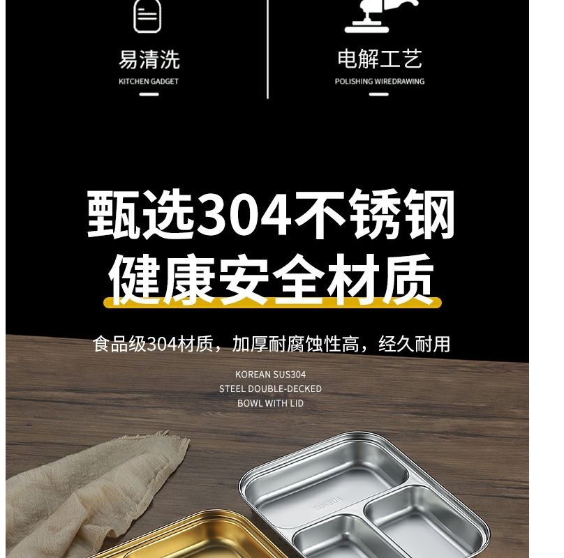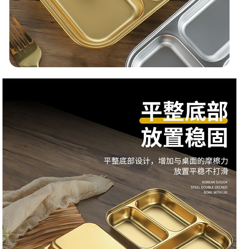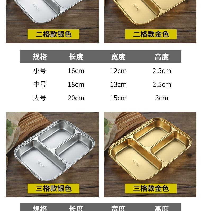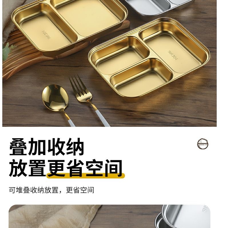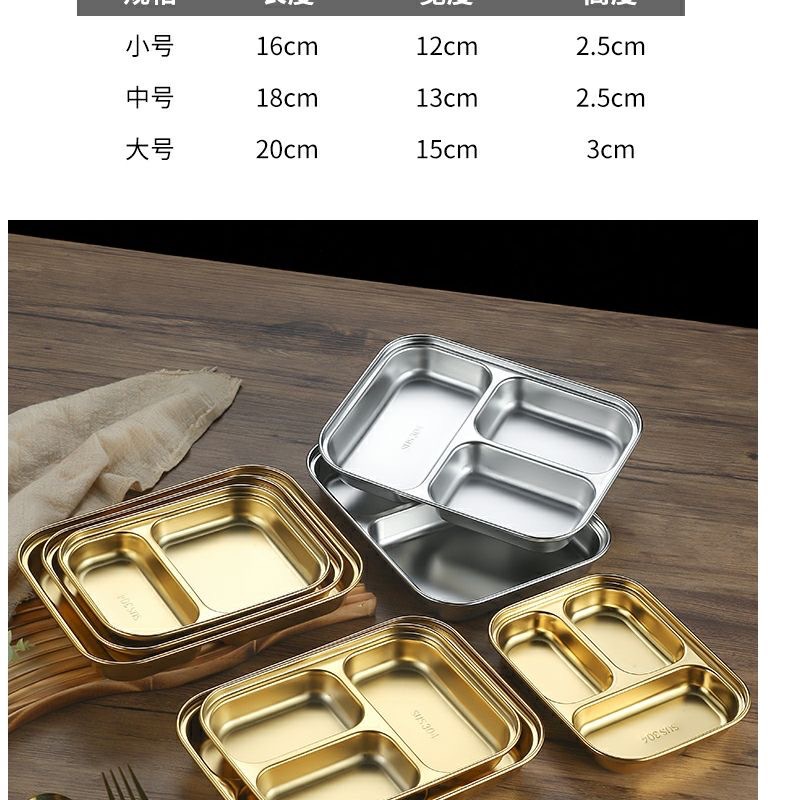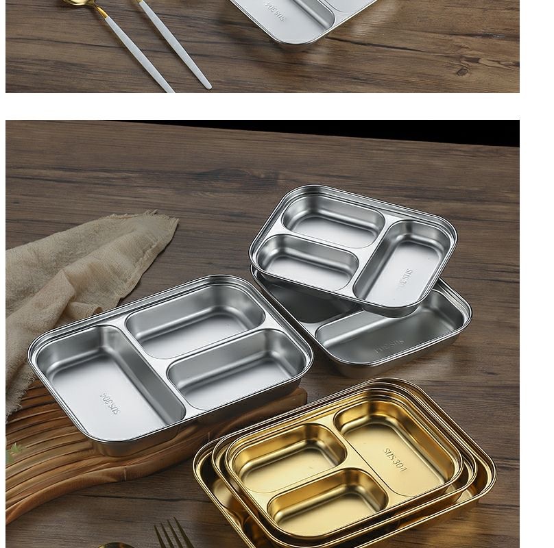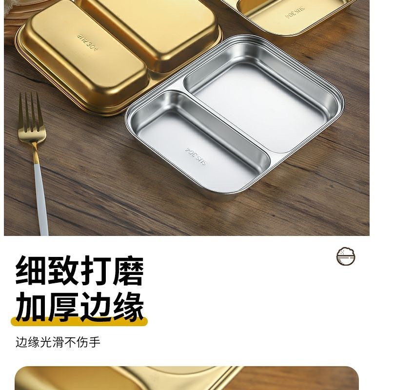 한국식 스테인레스 304 칸 박스 스낵 플레이트 황금 2 칸 3 칸 사각 접시 디너 플레이트 트레이 소스 플레이트스토어 가기