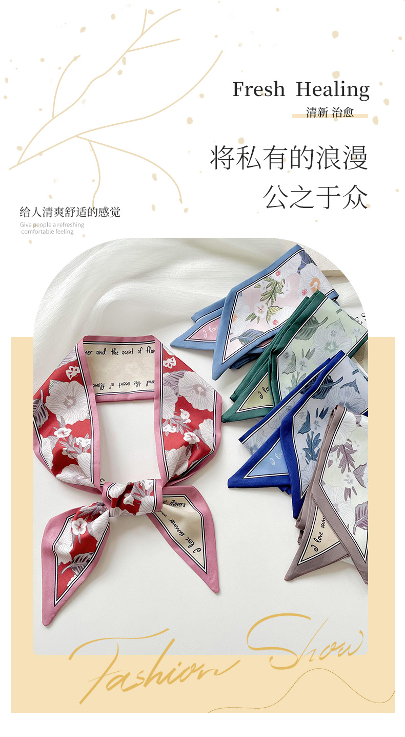 여성용 얇고 긴 실크 스카프, 봄 여름 한국어 버전, 다용도 머리 묶기, 가방 장식 깃발, 머리 스카프, 기념품 리본
