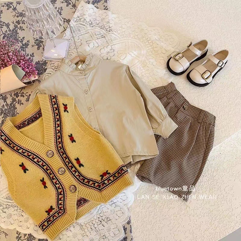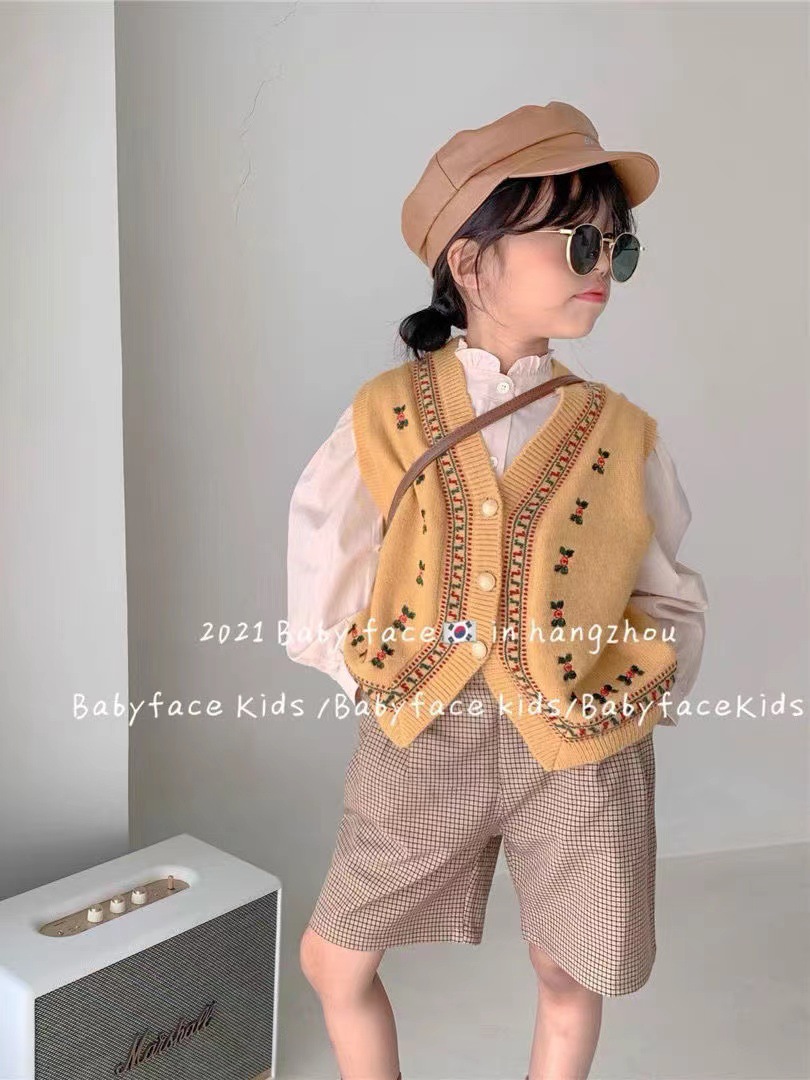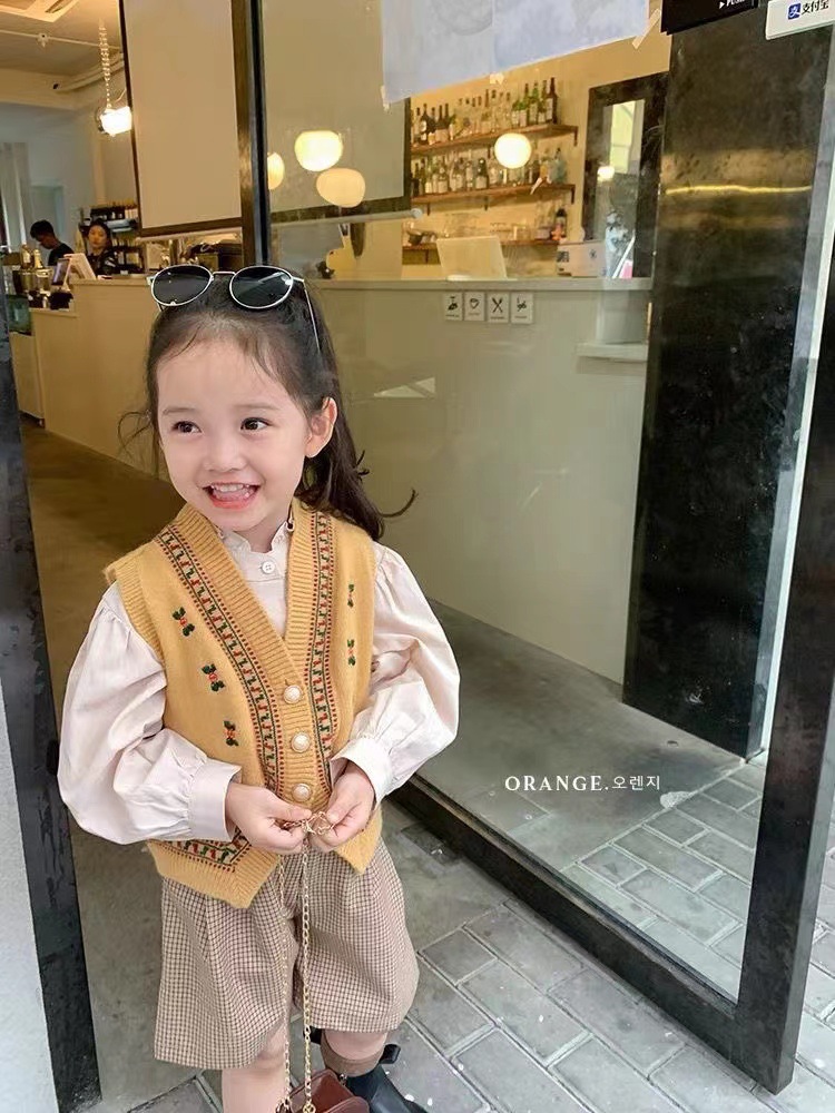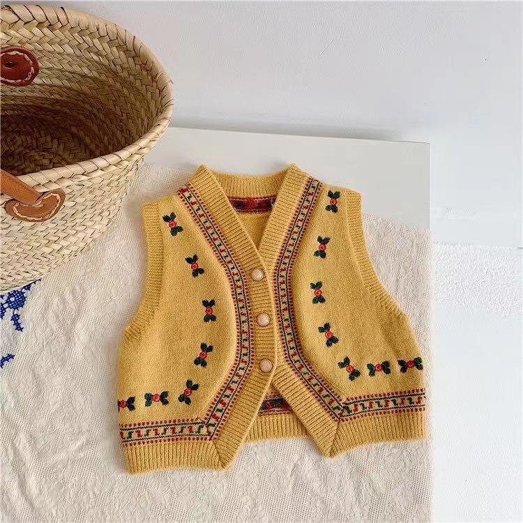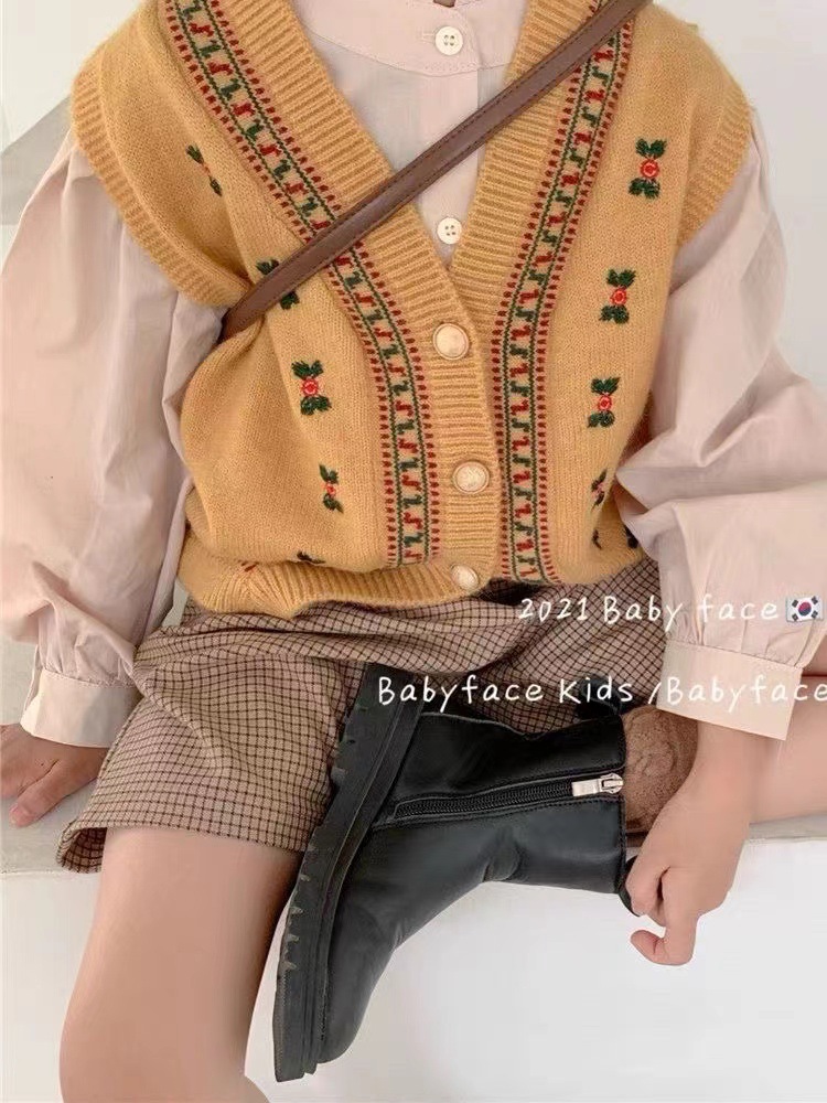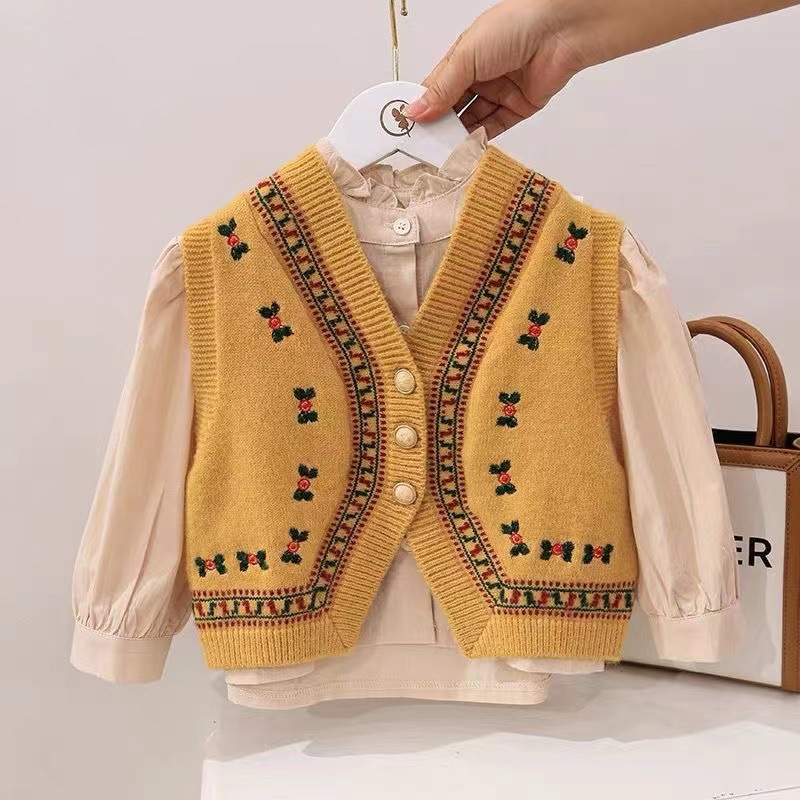 여아 니트 울 조끼 봄, 가을 새로운 스타일 탑 자수 아동 조끼스토어 가기