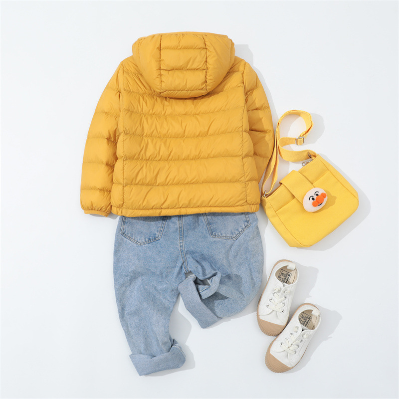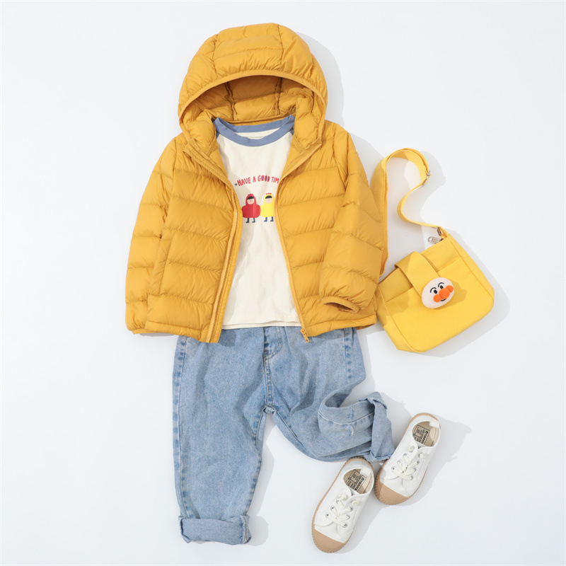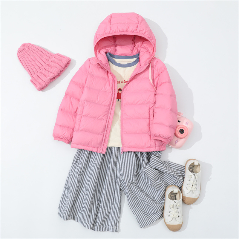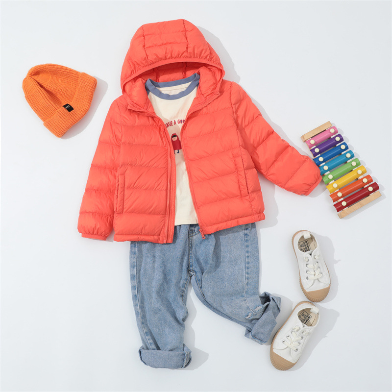 크로스 보더 가을과 겨울 새로운 어린이 다운 재킷 후드 중형 및 대형 어린이 짧은 소년 소녀 경량 90 벨벳 따뜻한 재킷