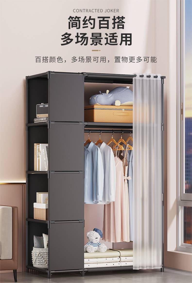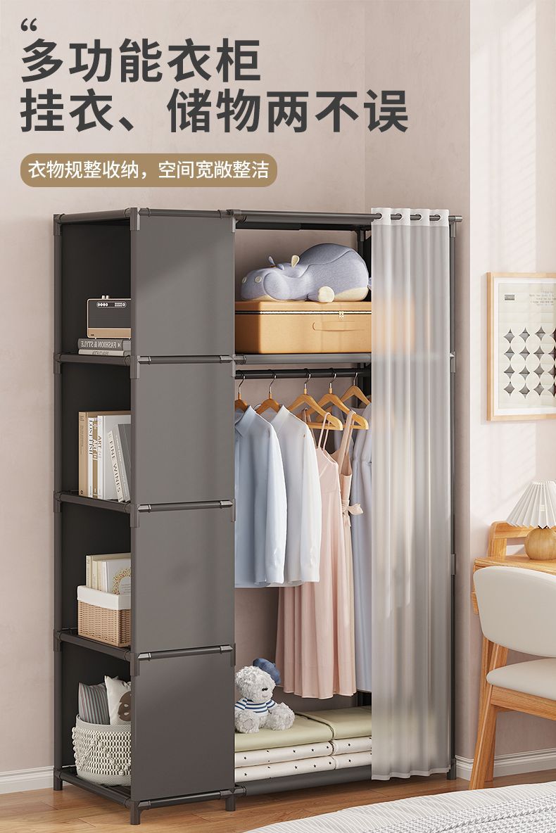 가정용 간단한 옷장 기숙사 수납 캐비닛 방진 옷 캐비닛 조립 다기능 수납 랙 임대 주택에 필요