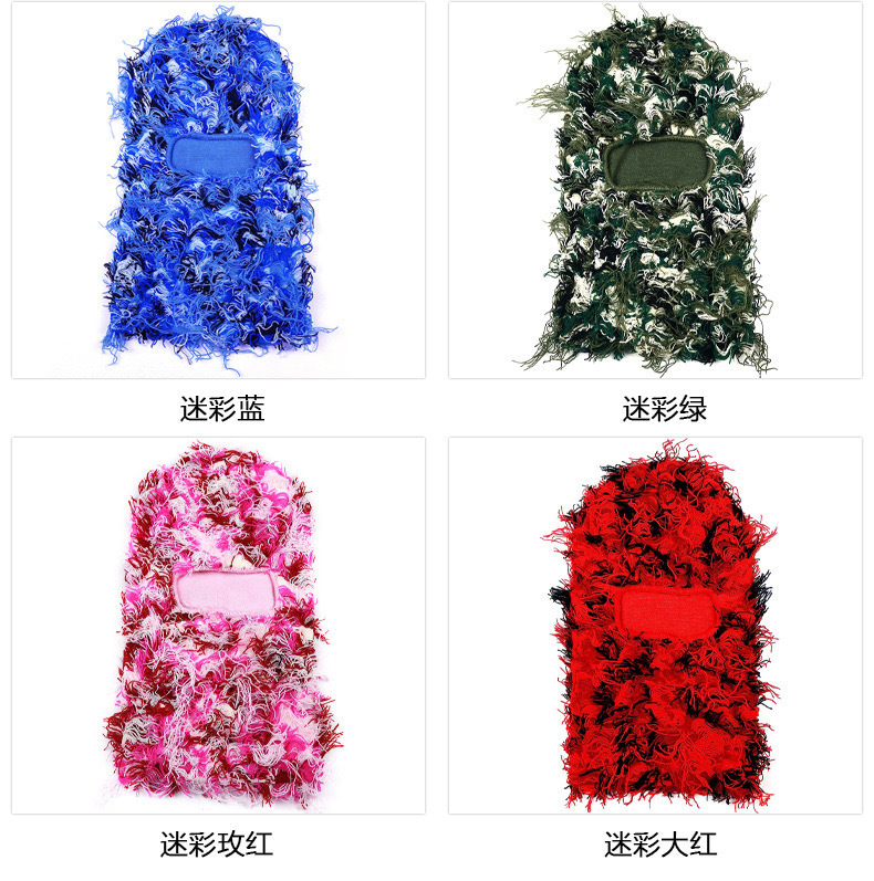 국경 간 폭발 아마존 모자 Balaclava 개인화 된 위장 니트 겨울 양모 따뜻한 모자 남성과 여성을위한