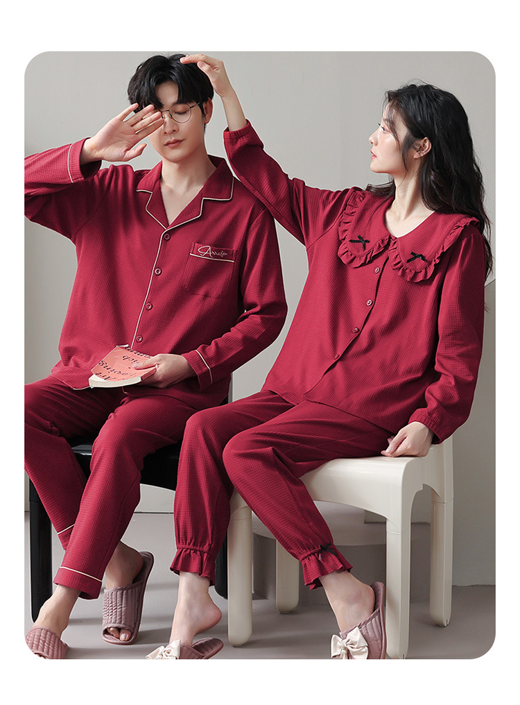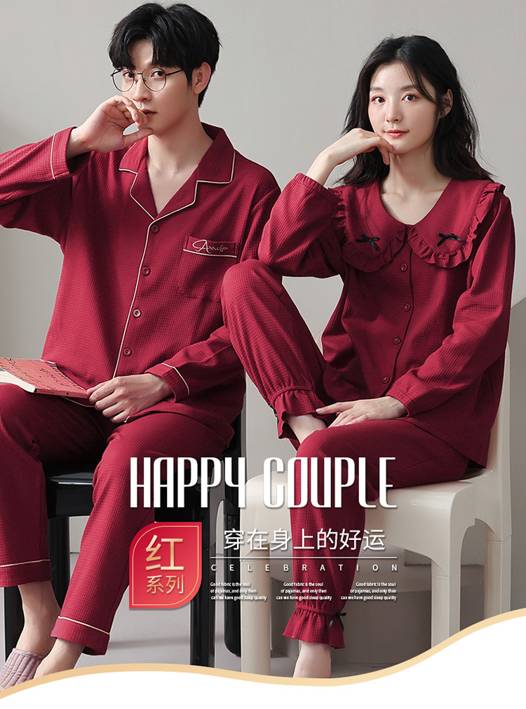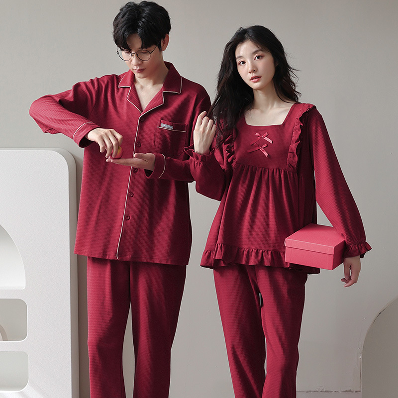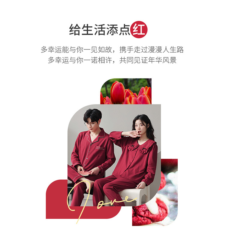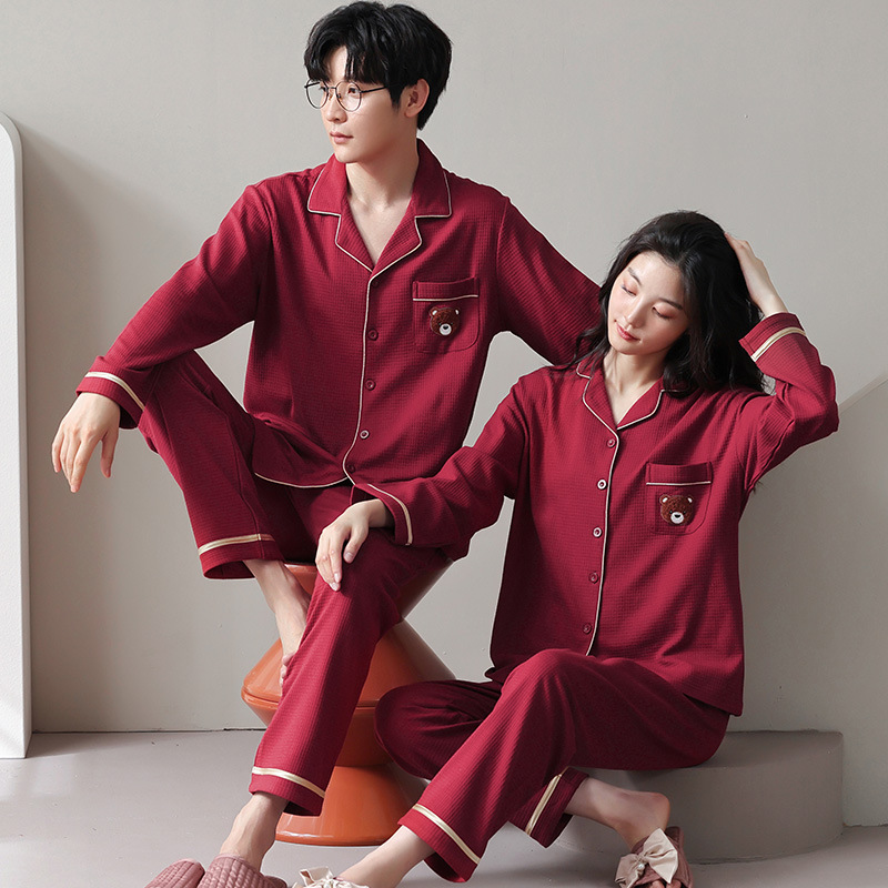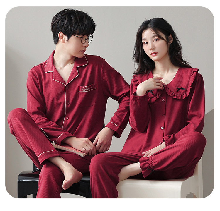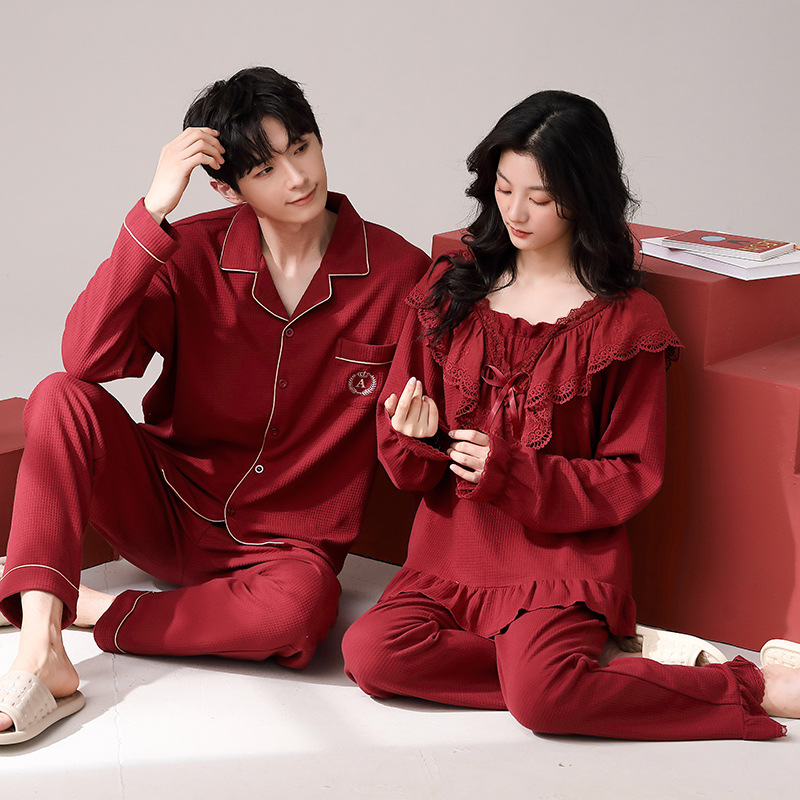커플 스타일 잠옷 여성 가을, 겨울 순수 코튼 카디건 빅 레드 웨딩 웨딩 남성 전체 홈웨어 세트 웨딩스토어 가기