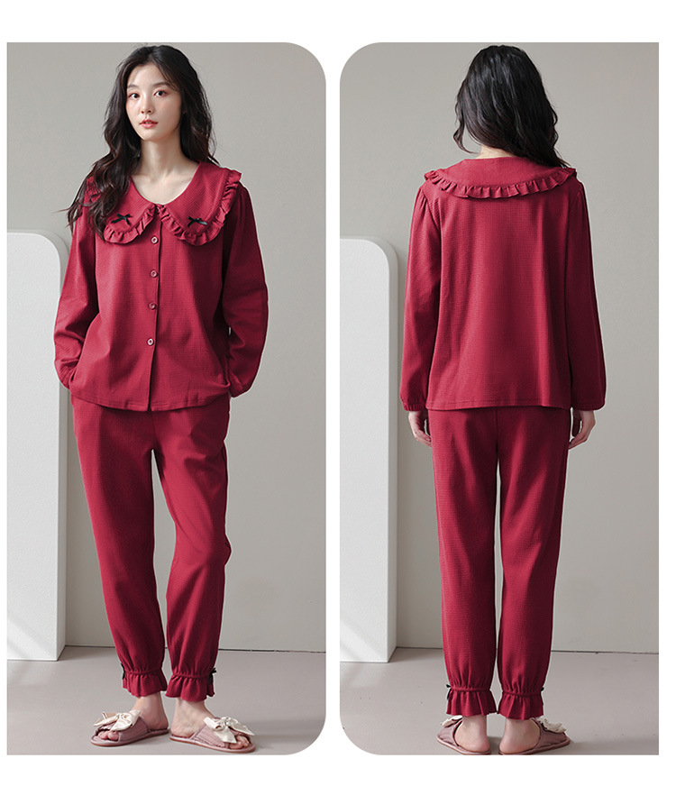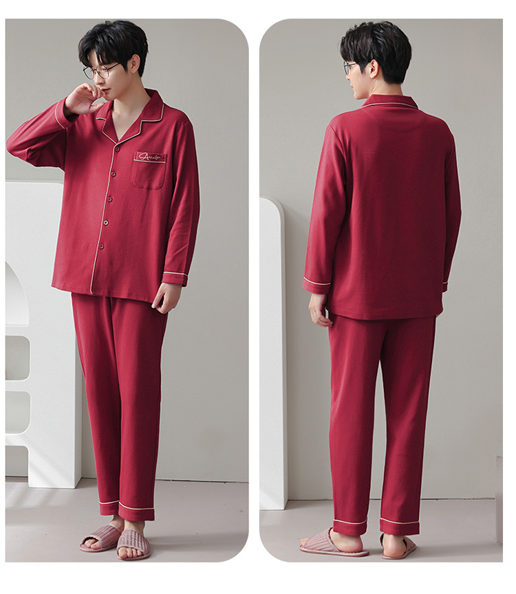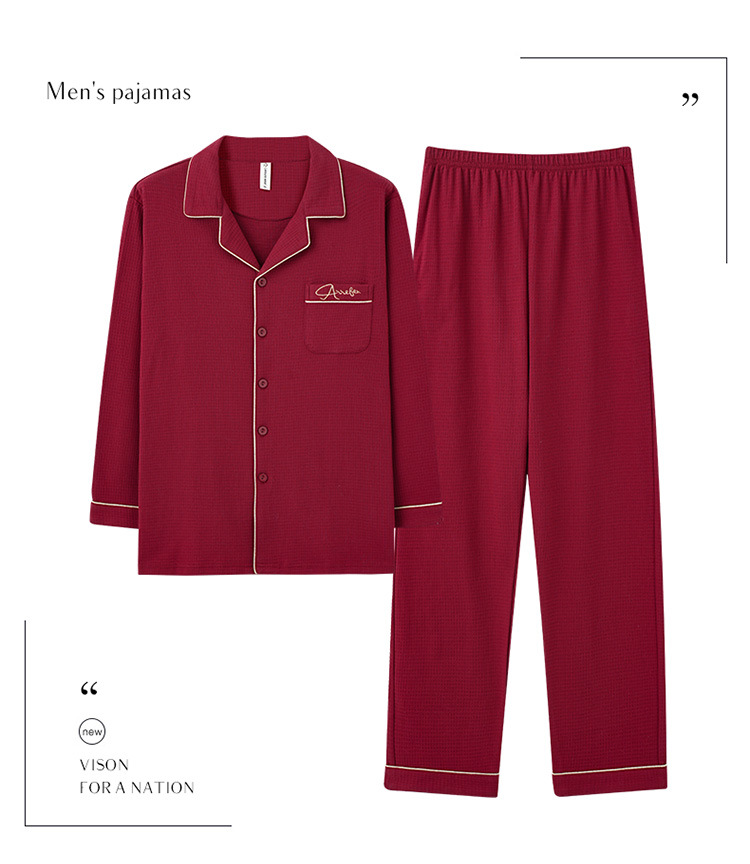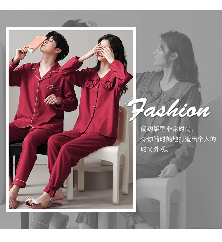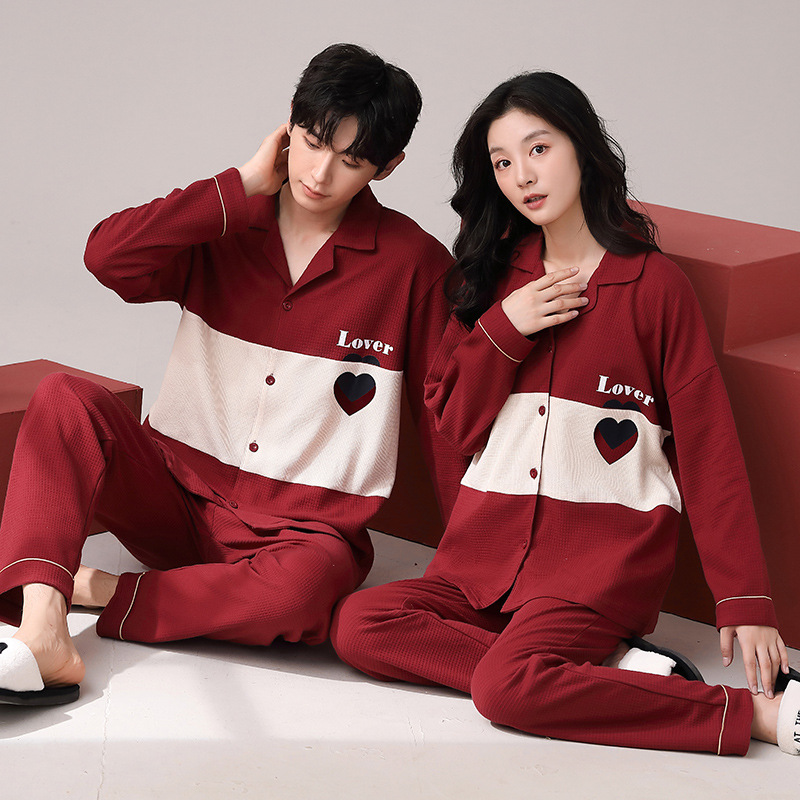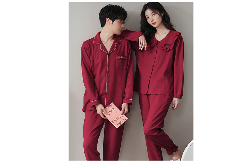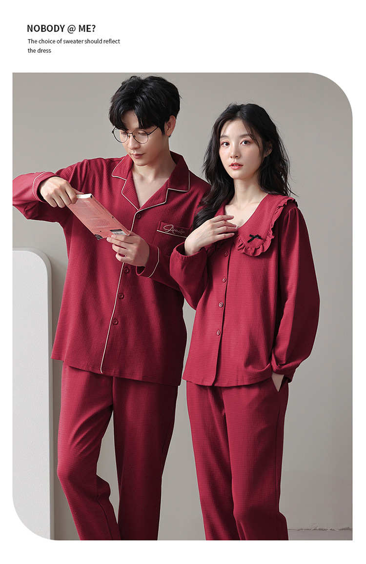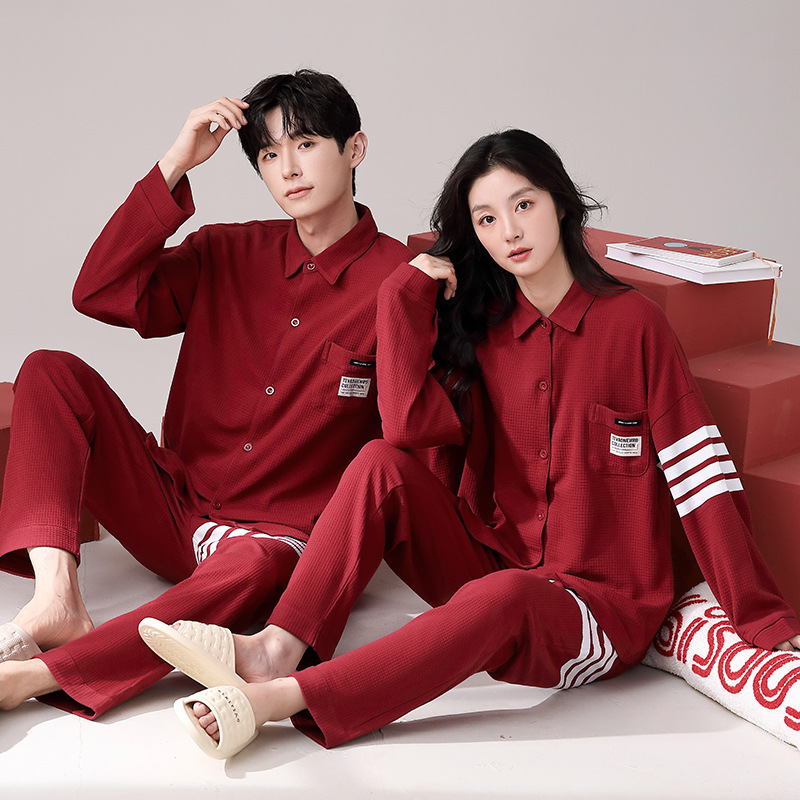 커플 스타일 잠옷 여성 가을, 겨울 순수 코튼 카디건 빅 레드 웨딩 웨딩 남성 전체 홈웨어 세트 웨딩스토어 가기