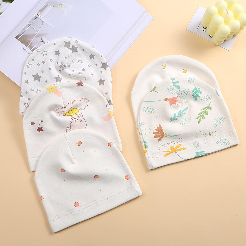 신생아를위한 유아용 코튼 프린트 풀오버 캡 사계절 태아 모자 봄과 여름에 폰타넬 보호를위한 싱글 레이어 얇은 모자스토어 가기