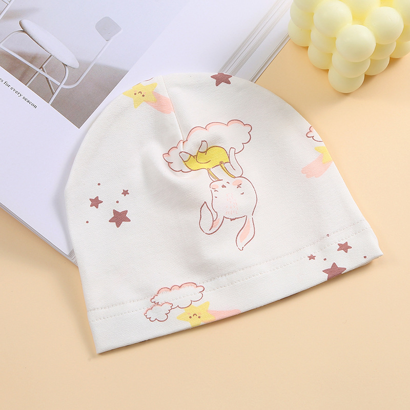 신생아를위한 유아용 코튼 프린트 풀오버 캡 사계절 태아 모자 봄과 여름에 폰타넬 보호를위한 싱글 레이어 얇은 모자