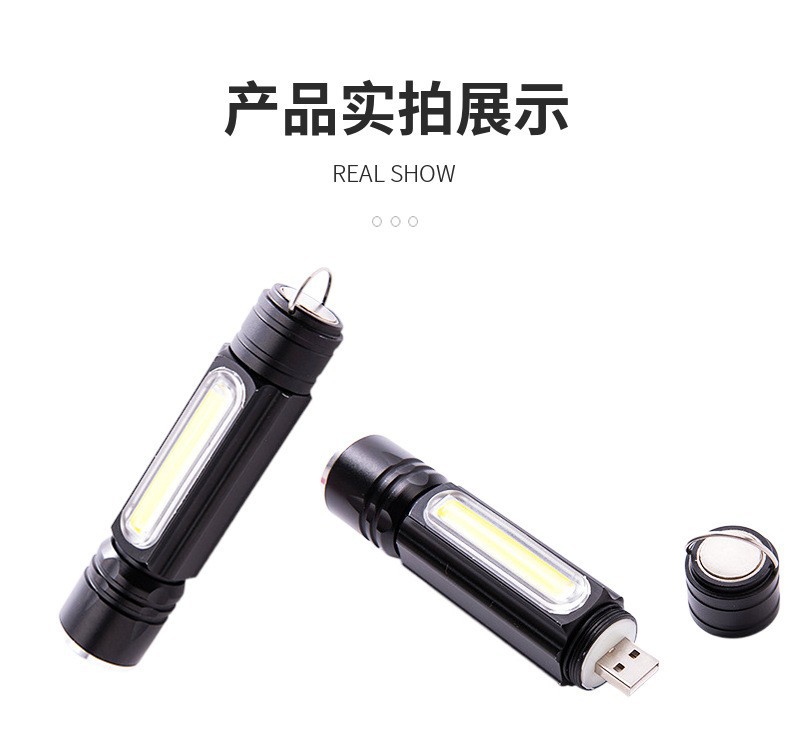 야외 조명 usb 충전식 줌 미니 손전등 다기능 LED 강한 조명 손전등 cob 측면 조명스토어 가기