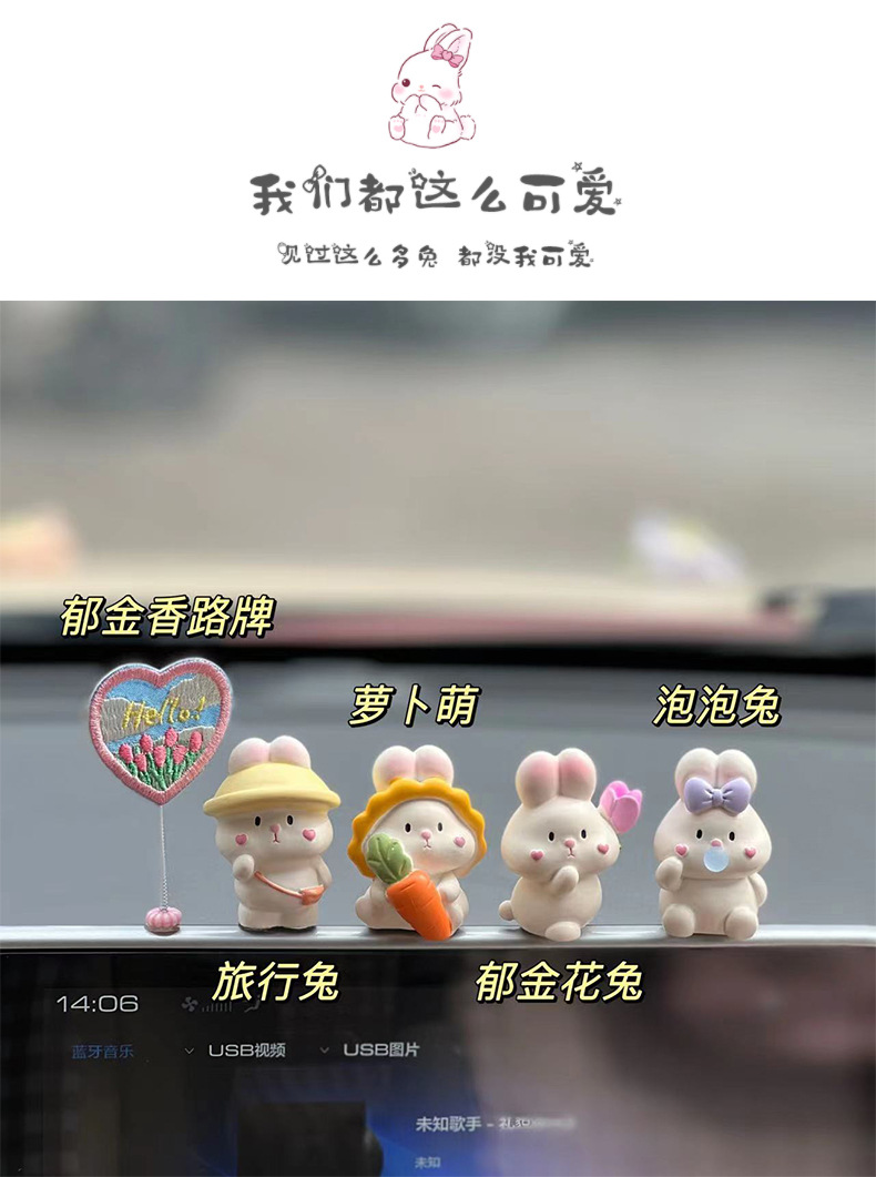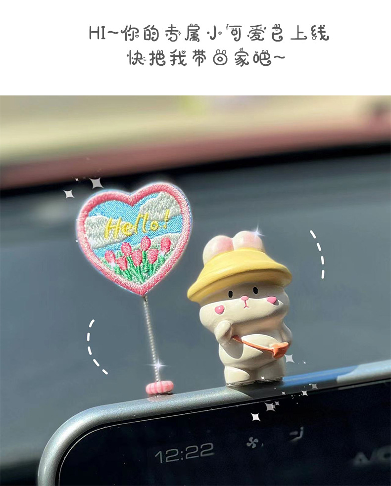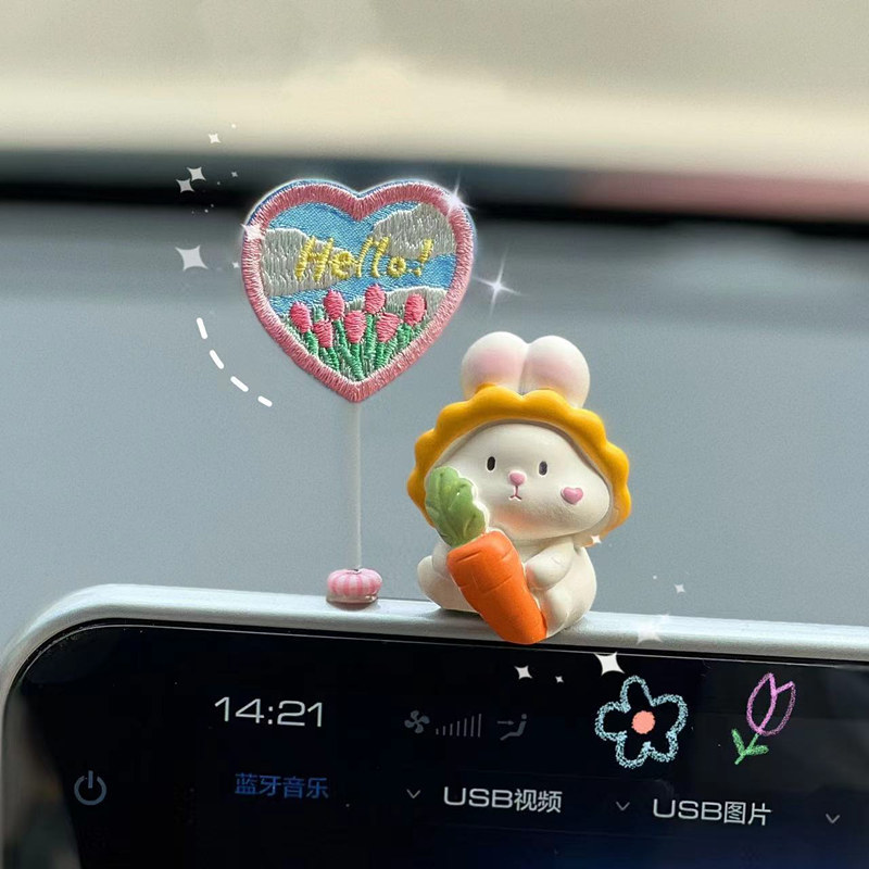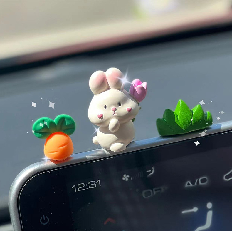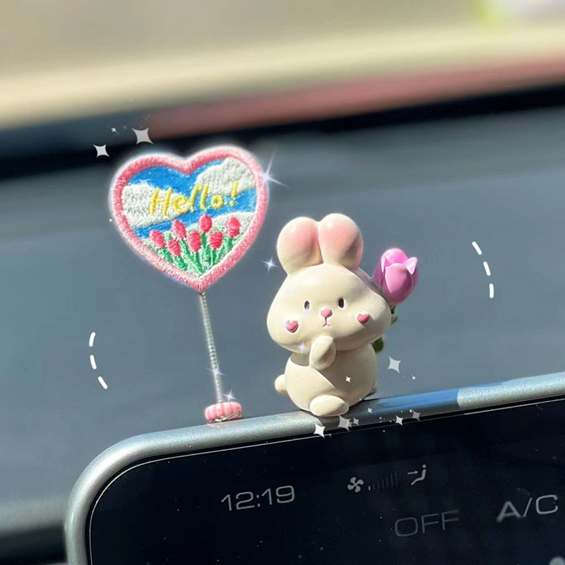 2025 신차 인테리어 장식품, 자동차 센터 콘솔 장식품, 귀여운 토끼 자동차 장식품, 여성용스토어 가기