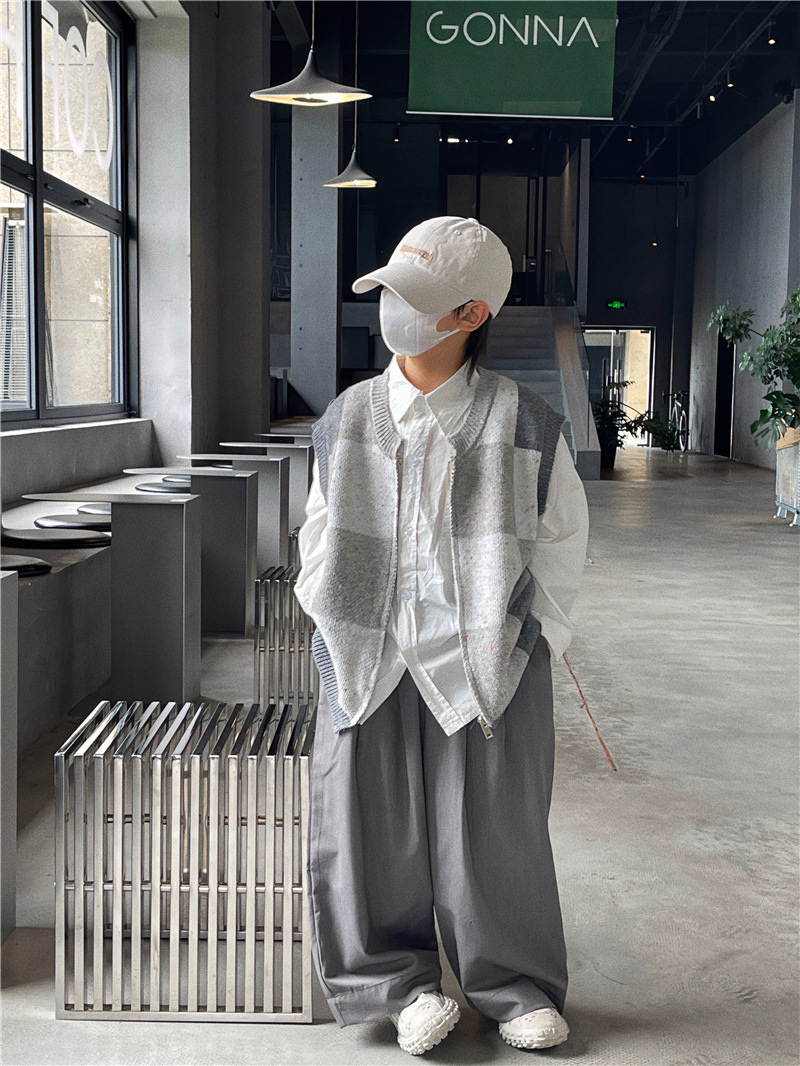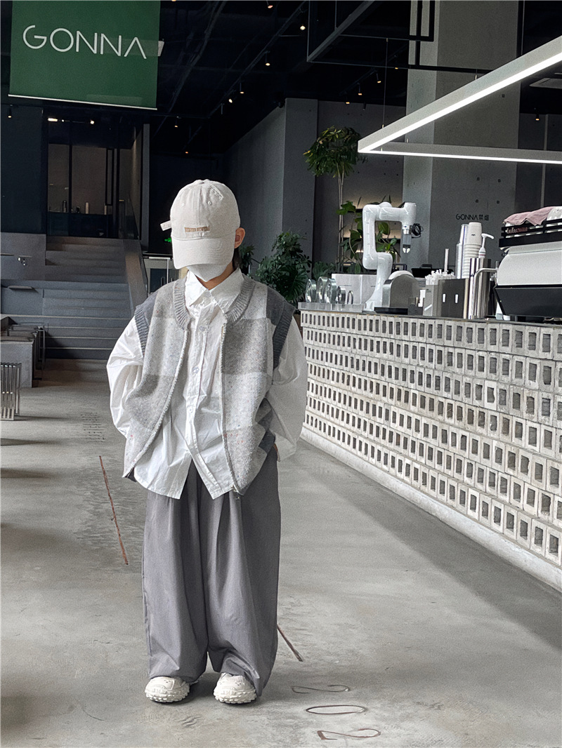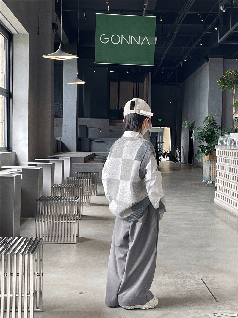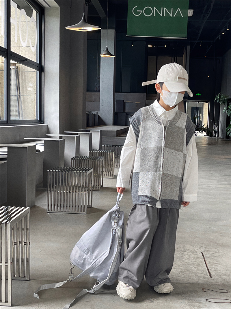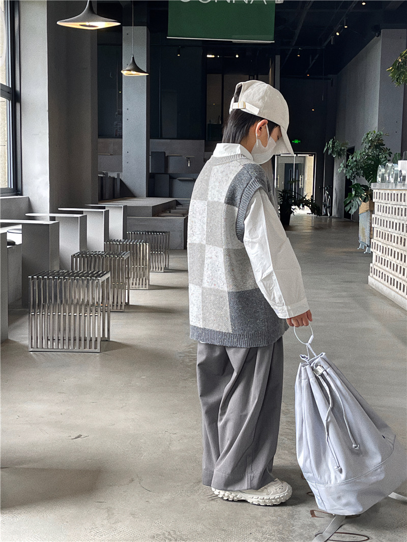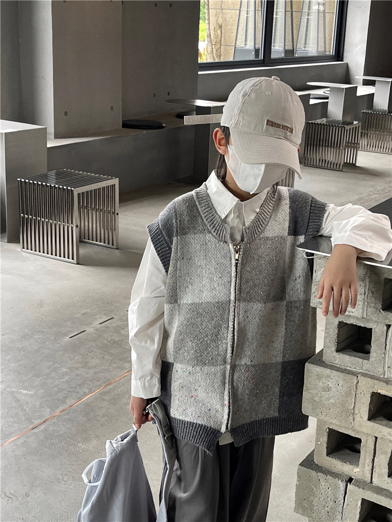 Baoduo 아동복 남아 가디건 스웨터 조끼 2023 새로운 봄과 가을 코트 어린이 한국 격자 무늬 니트웨어스토어 가기